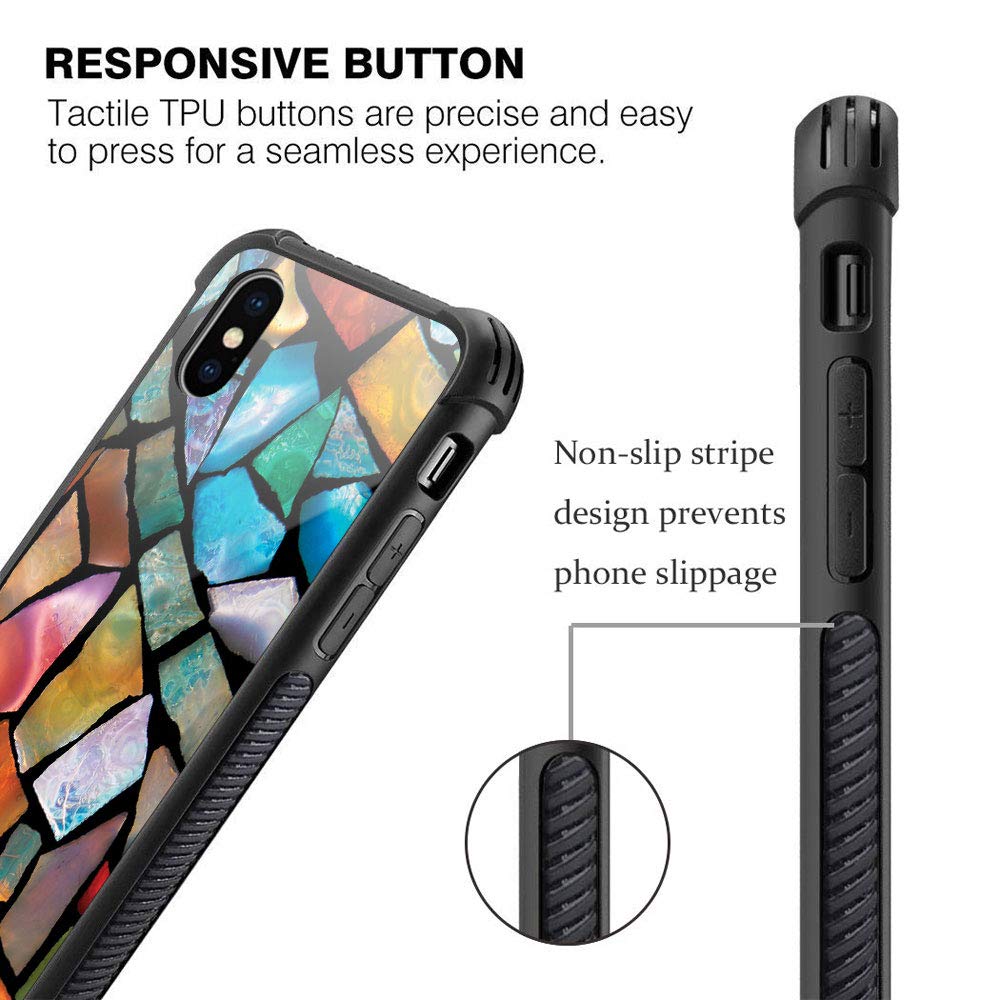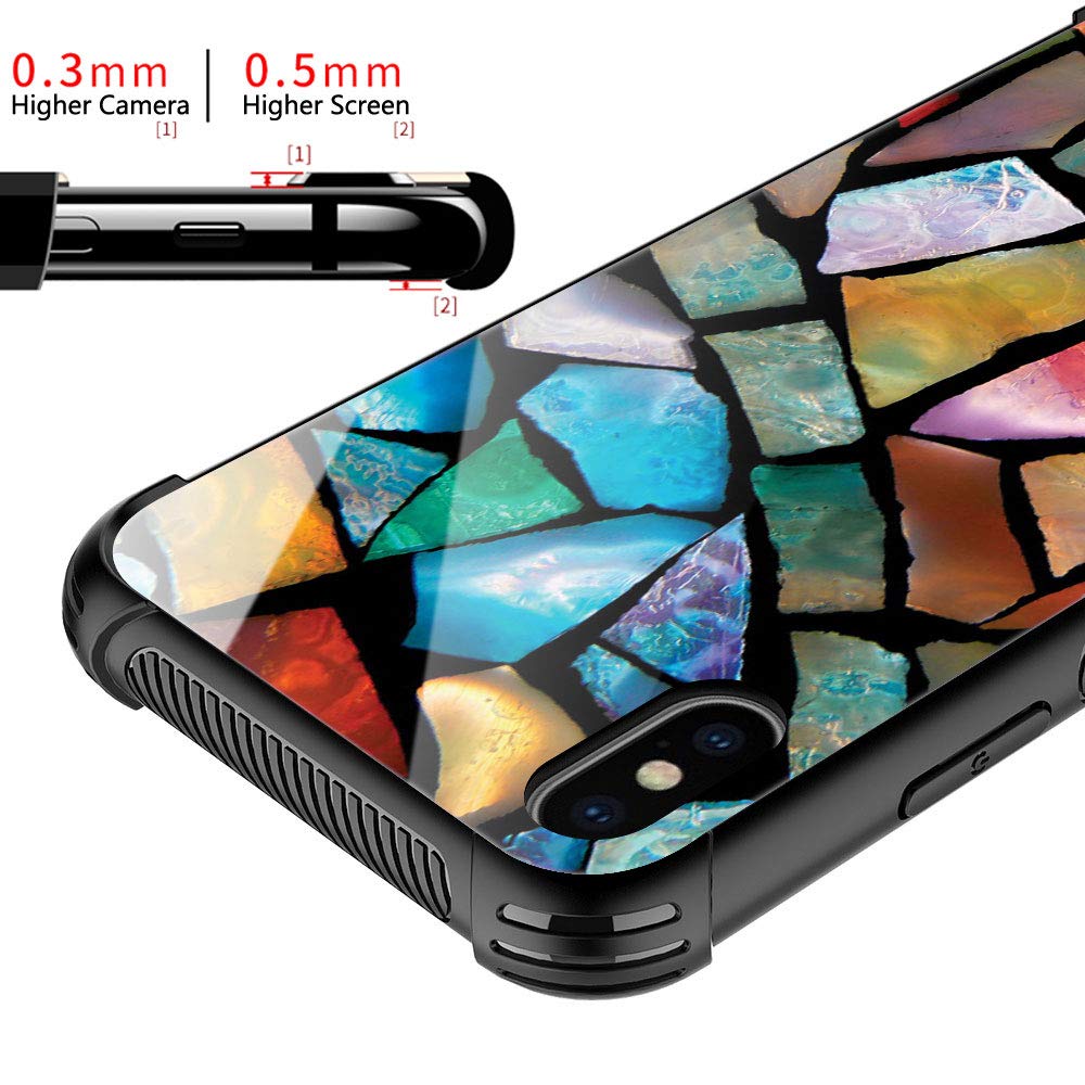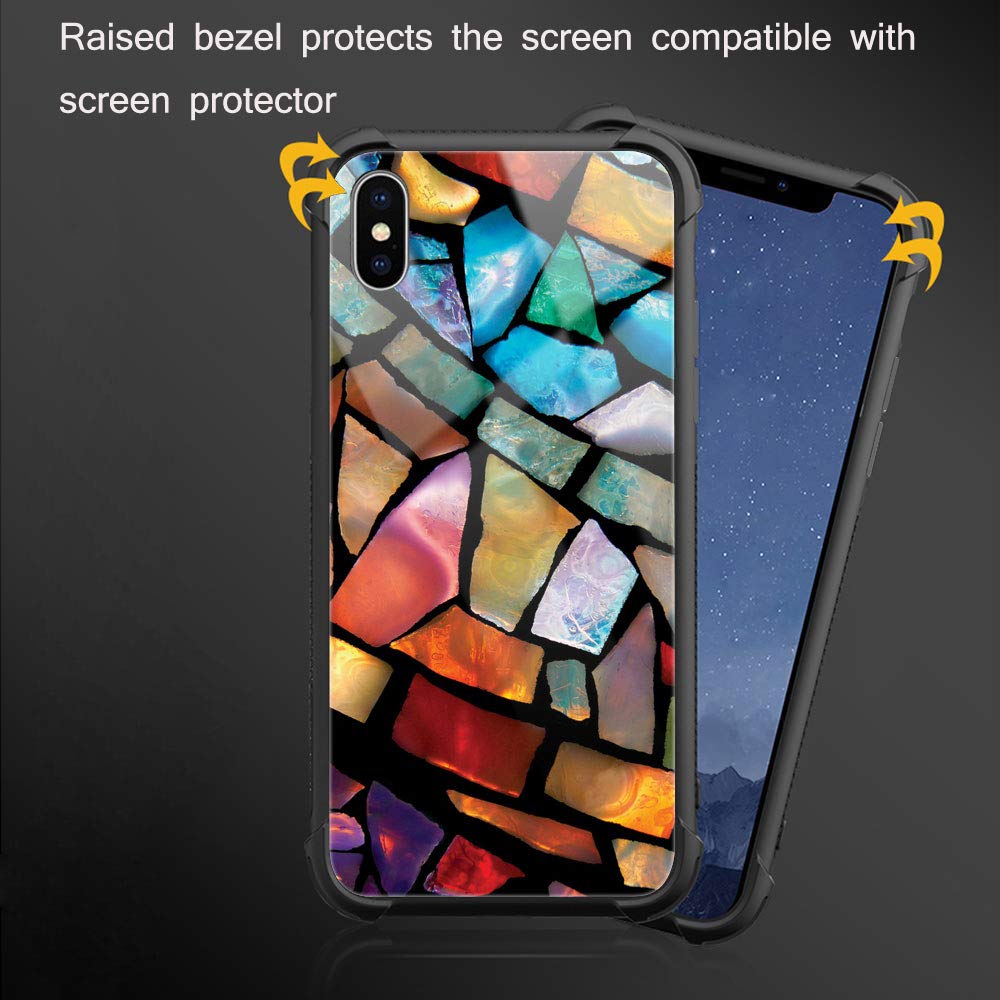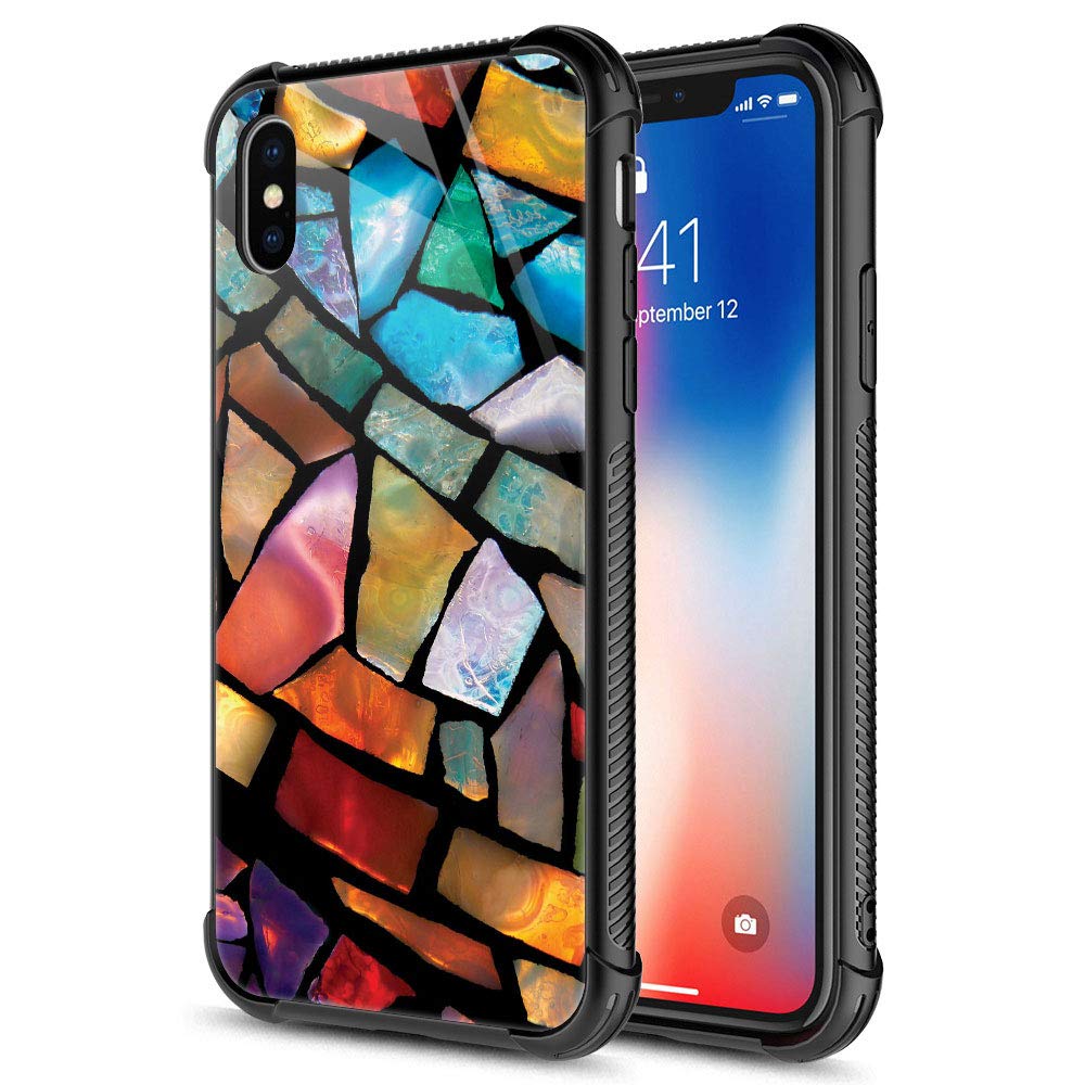 Iphone Xr Case,Stained Glass Mosaic Fiesta Fun Iphone Xr Cases, Tempered Glass Back+Soft Silicone Tpu Shock Protective Case For