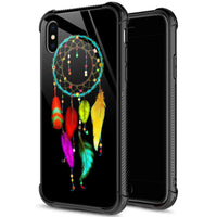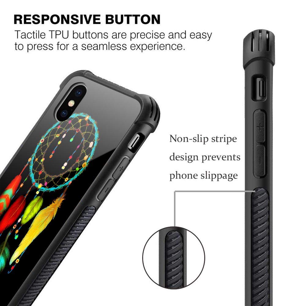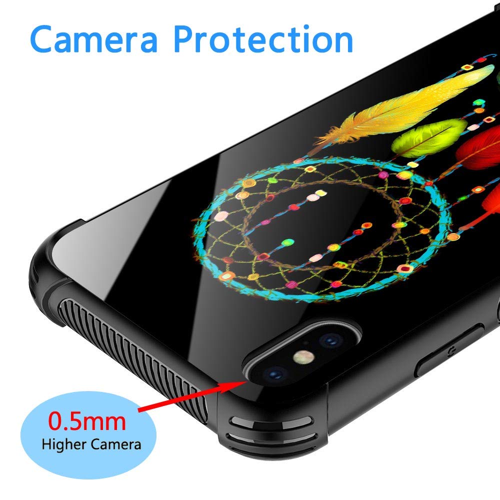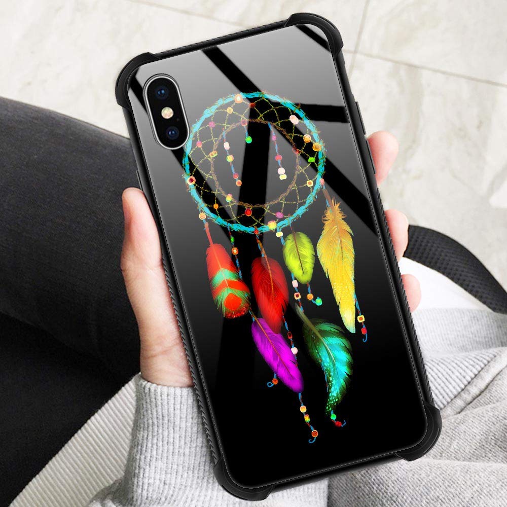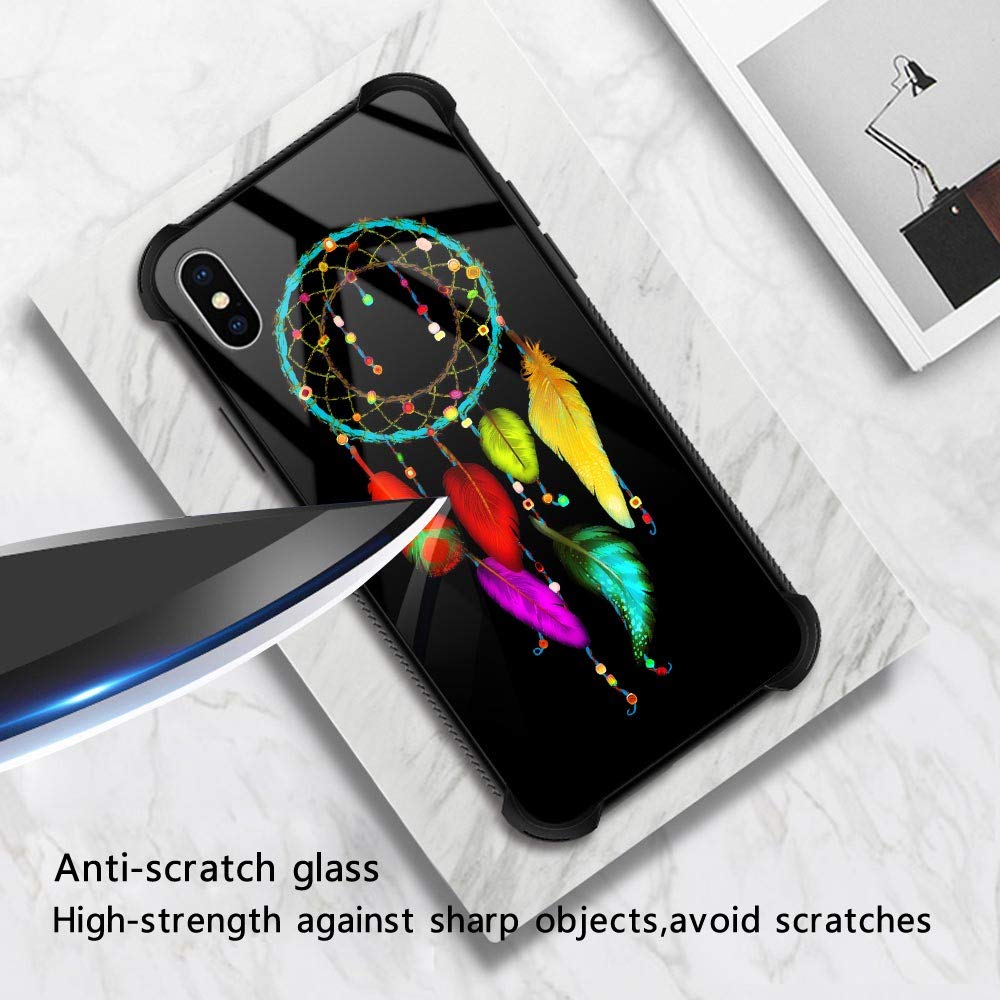 Iphone Xs Max Case,9H Tempered Glass Iphone Xs Max Cases Colorful Feathers Pattern For Girls Women,Soft Silicone Tpu Bumper Case