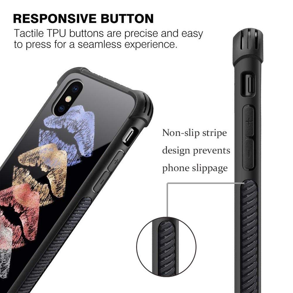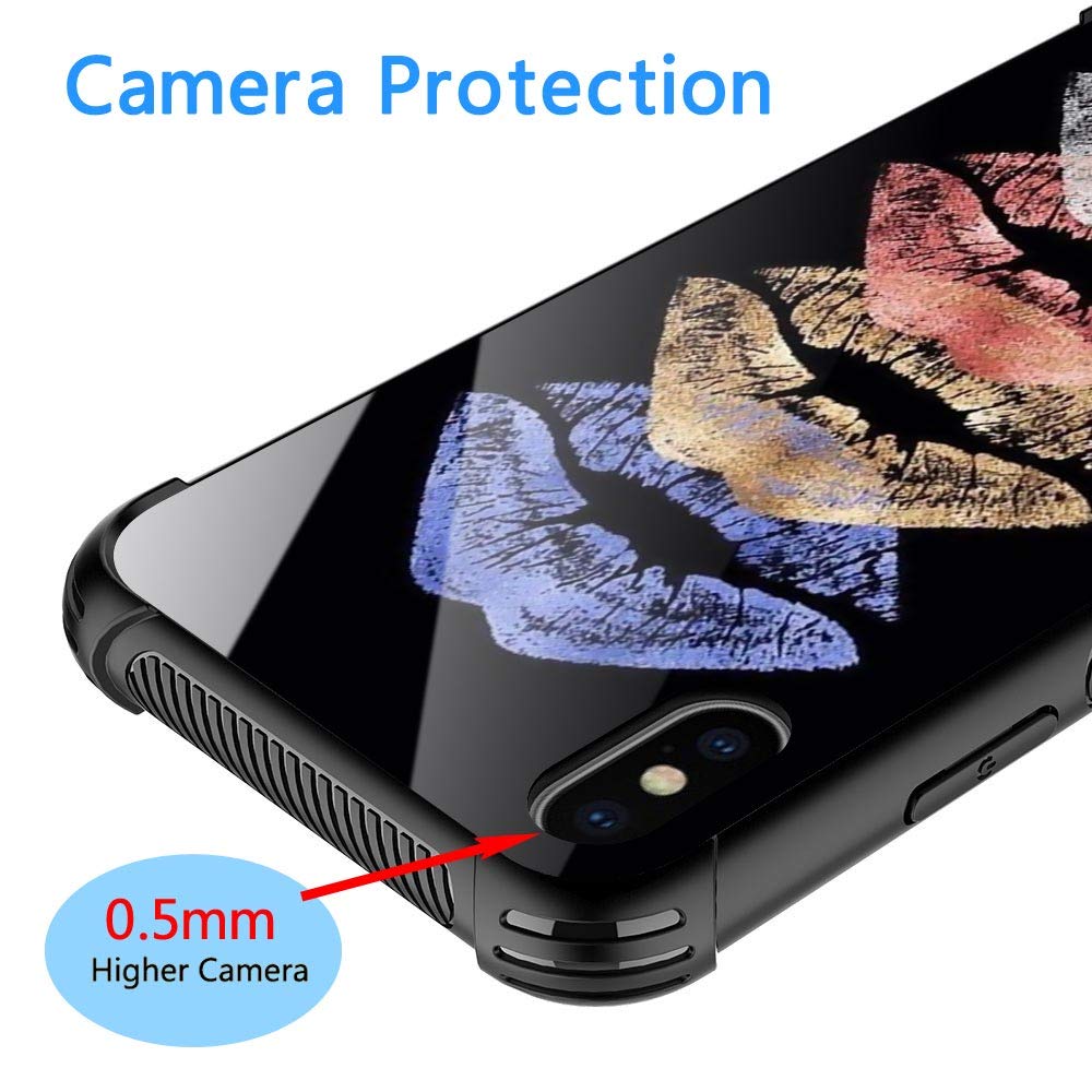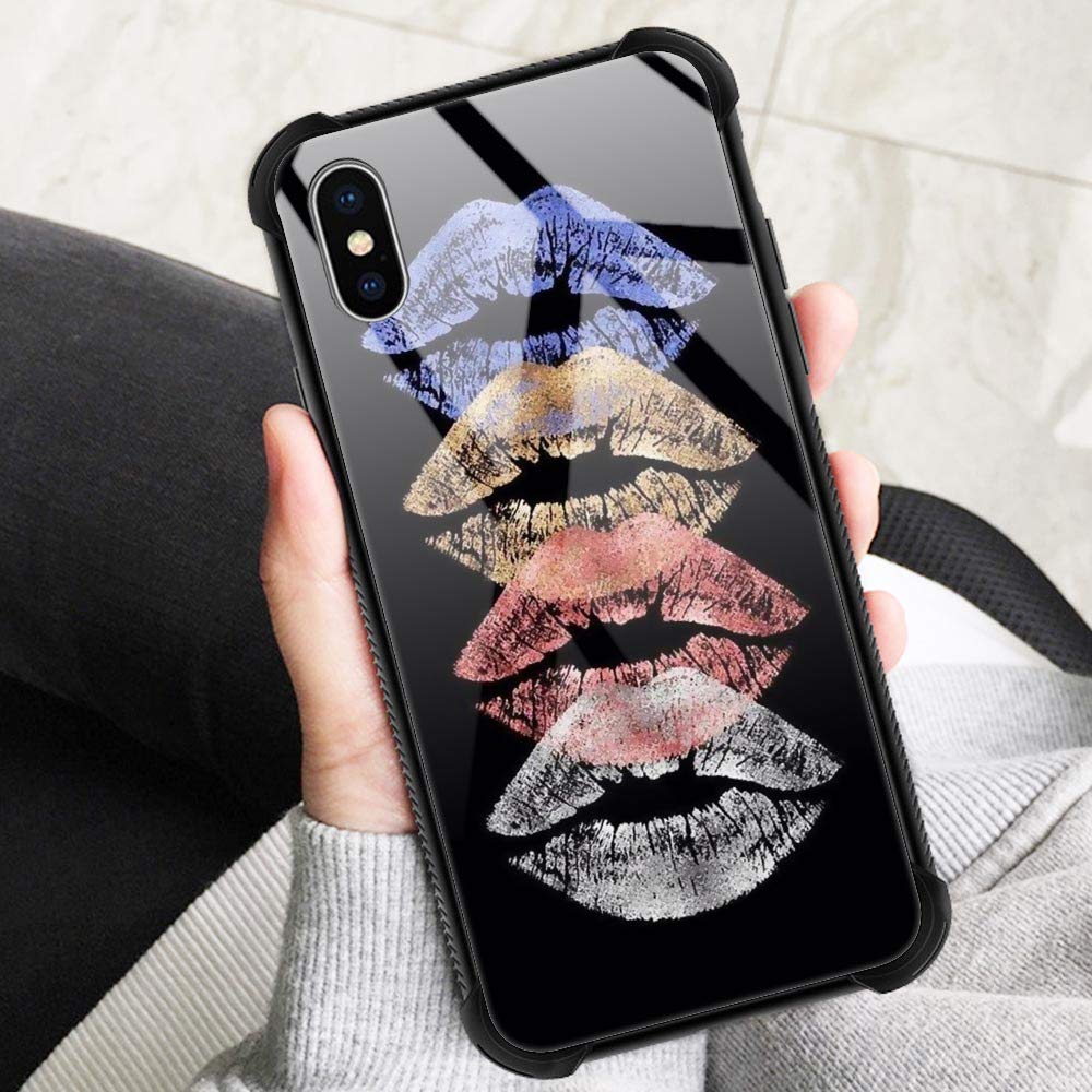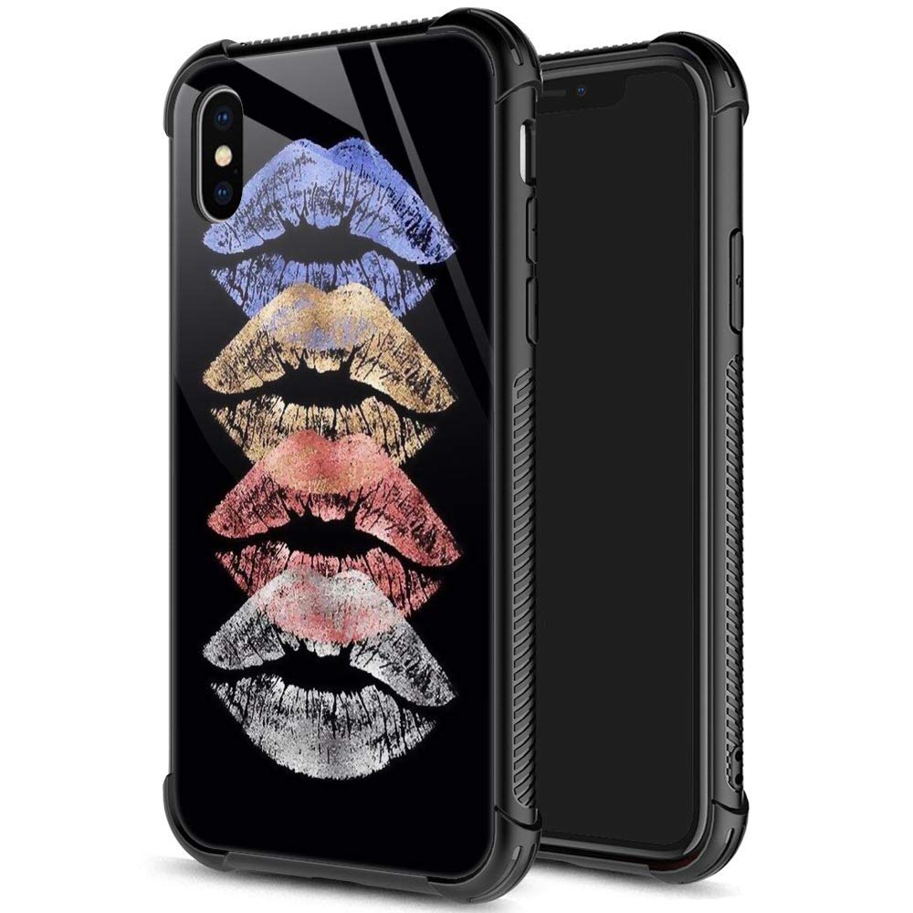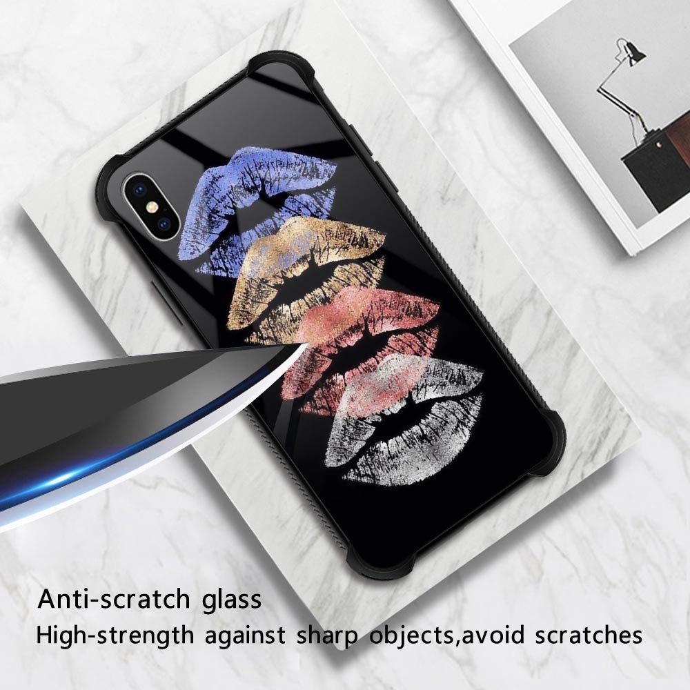 Iphone Xs Max Case,9H Tempered Glass Iphone Xs Max Cases For Girls Women,Sexy Colorful Lips Pattern Design Printing Shockproof A
