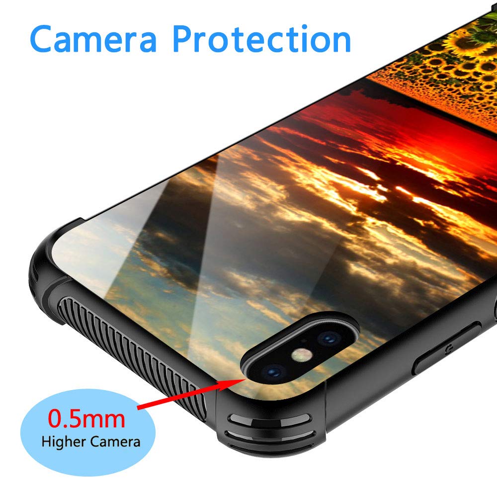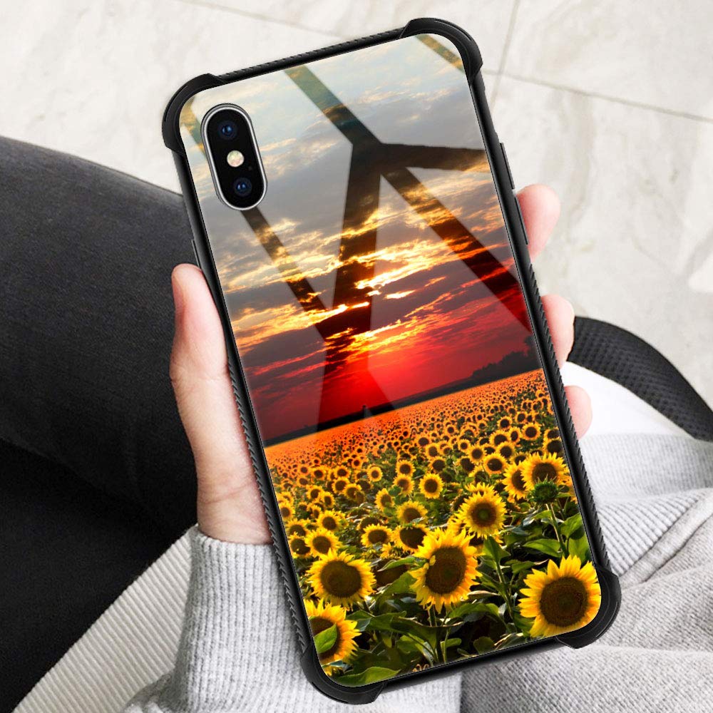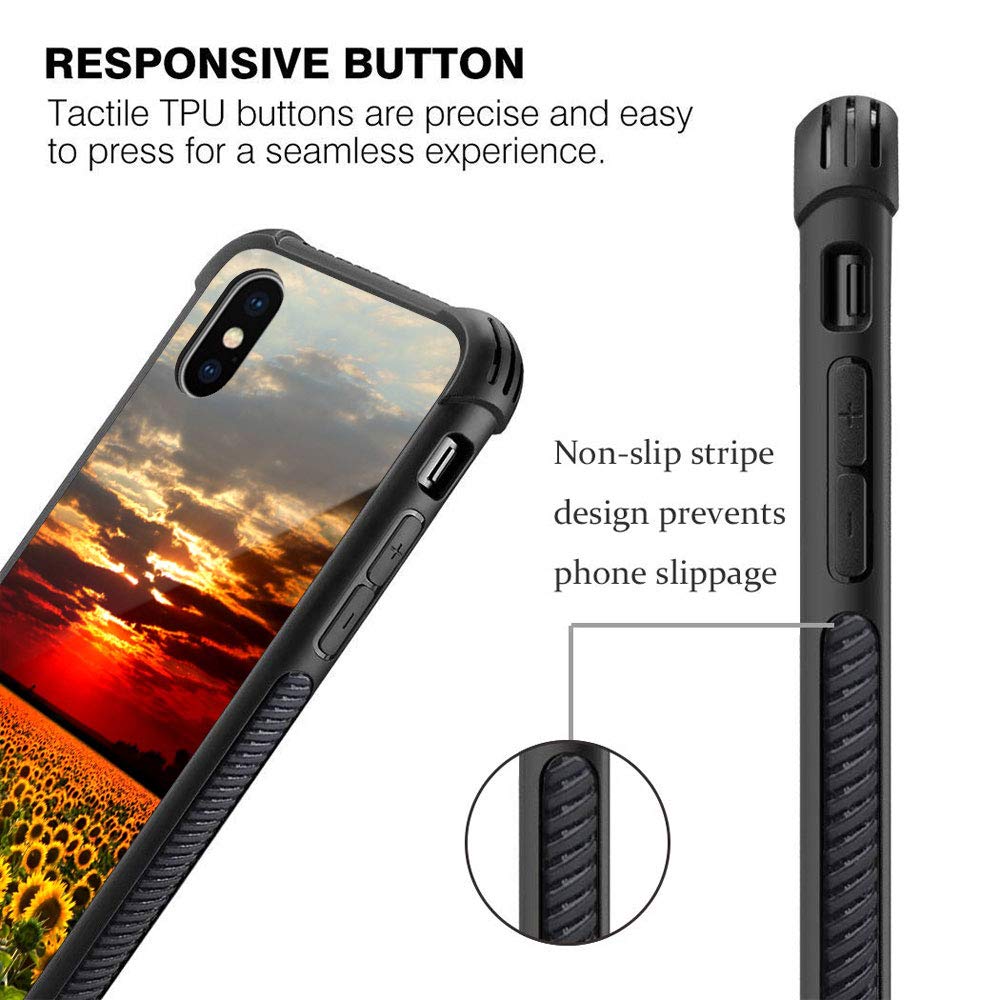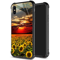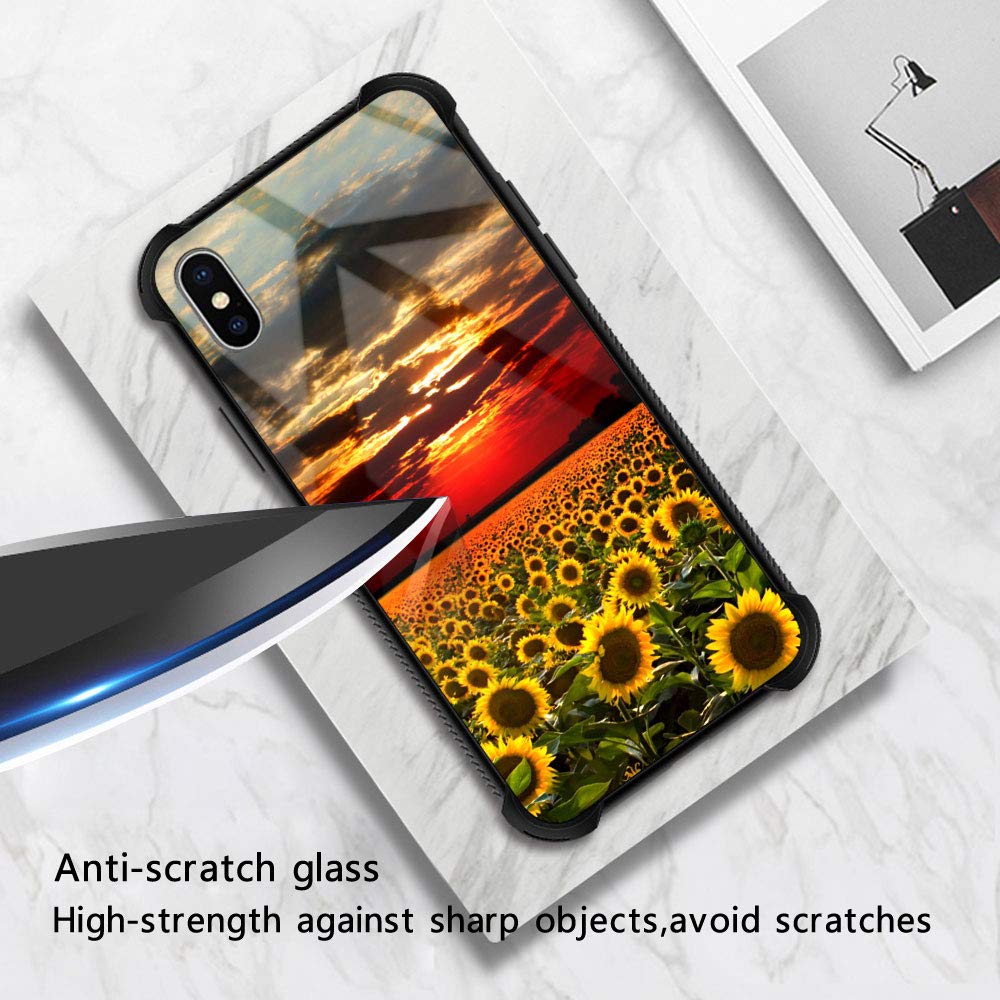 Iphone Xs Max Case,9H Tempered Glass Iphone Xs Max Cases For Girls Women, Sunflowers Field Pattern Shockproof Anti Scratch Case