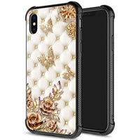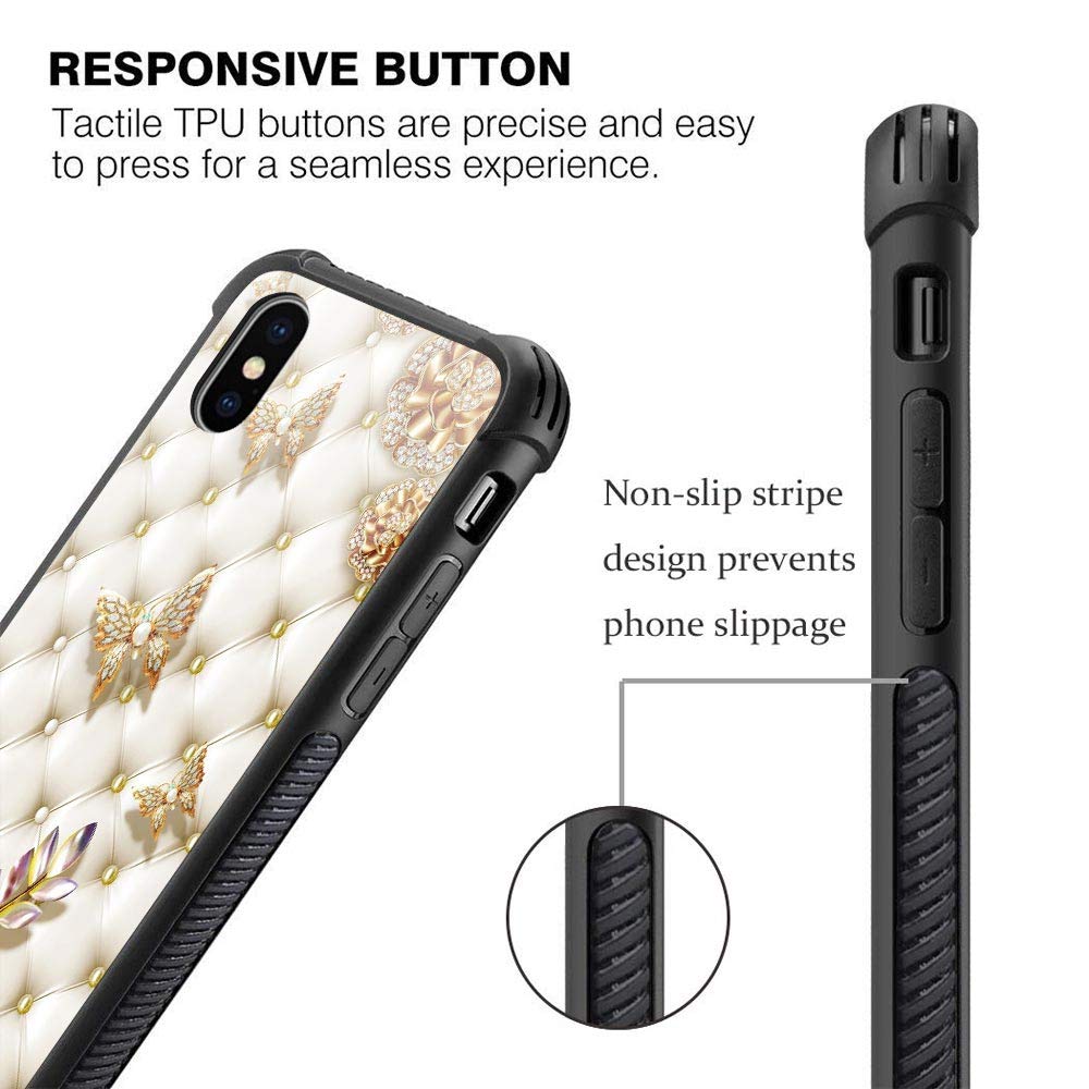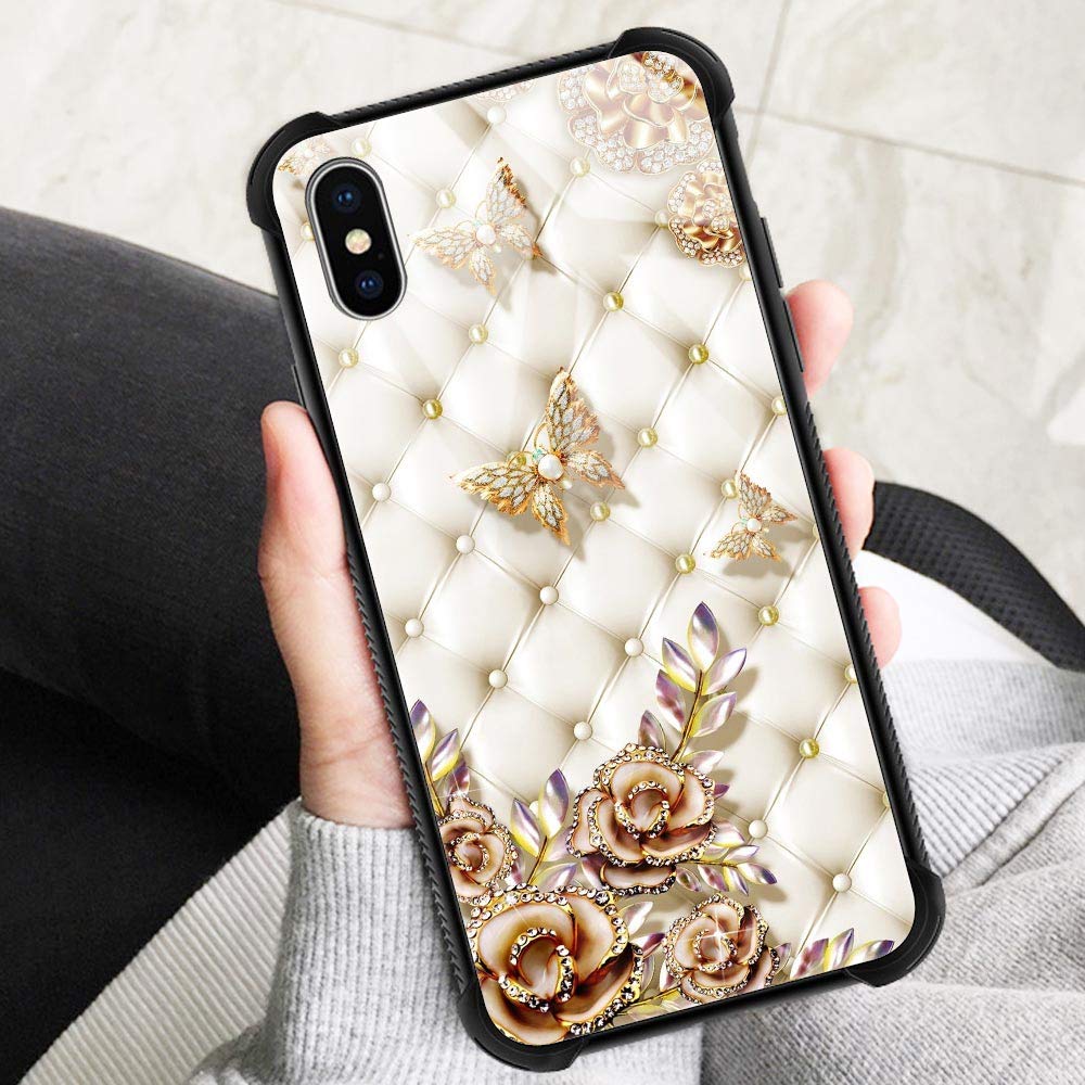 Iphone Xs Max Case,9H Tempered Glass Iphone Xs Max Cases For Girls Womens,Diamond Roses Pattern Design Printing Shockproof Anti