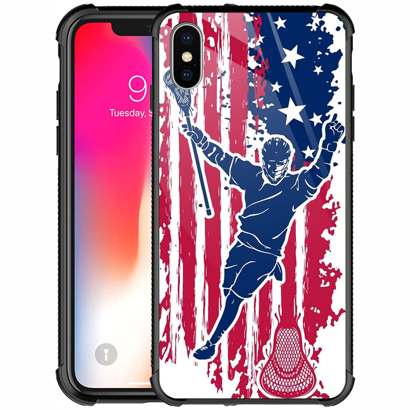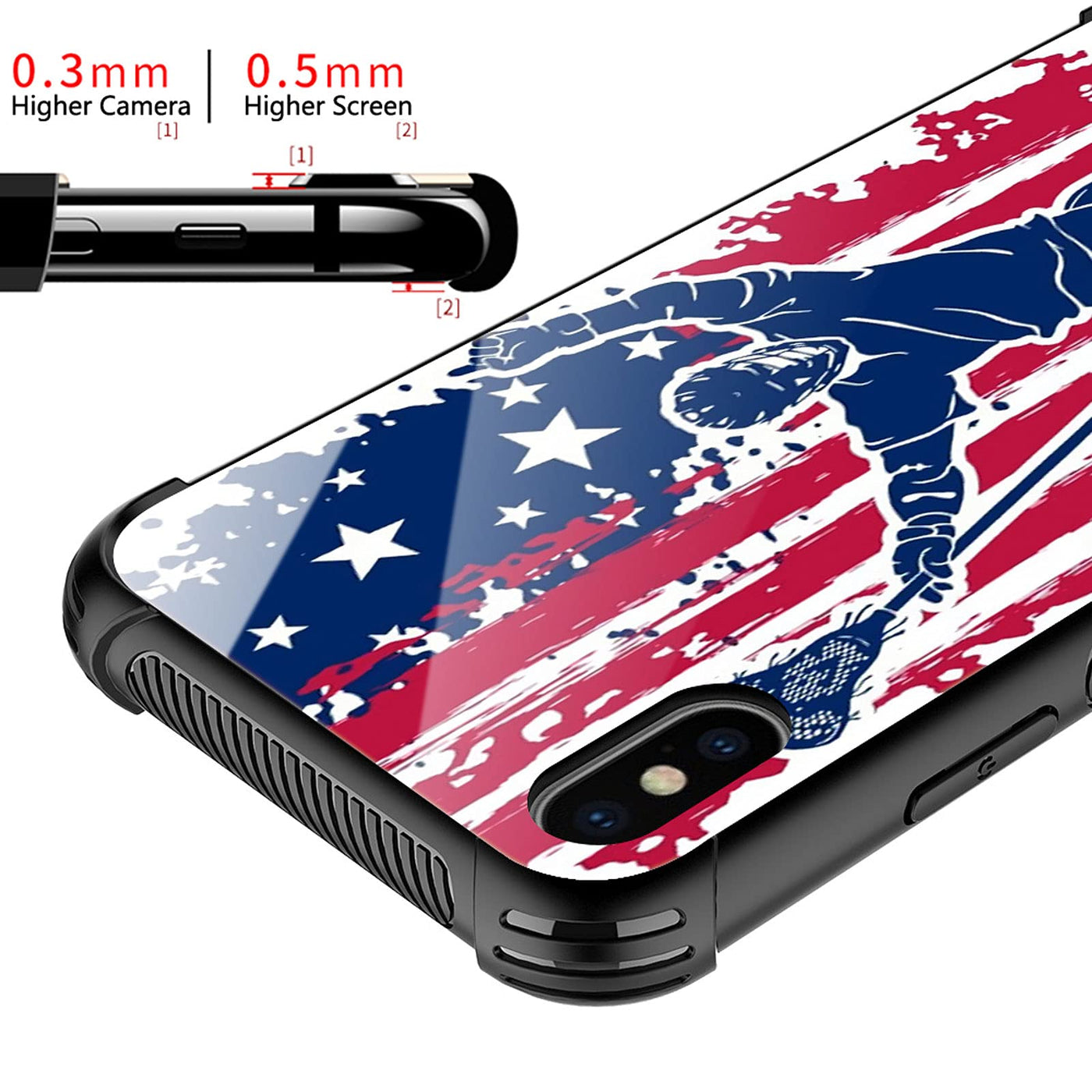 Iphone Xs Max Case Lacrosse American Flag Graphic For Girls Boys,Picture Pattern Design Shockproof Anti Scratch Hard Pc Back Cas