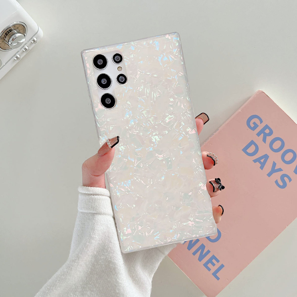 Q: How does the design of the case protect my phone?A: The case features raised bezels that offer protection for both the screen and camera lens, preventing scratches and damage when the phone is laid down on surfaces.