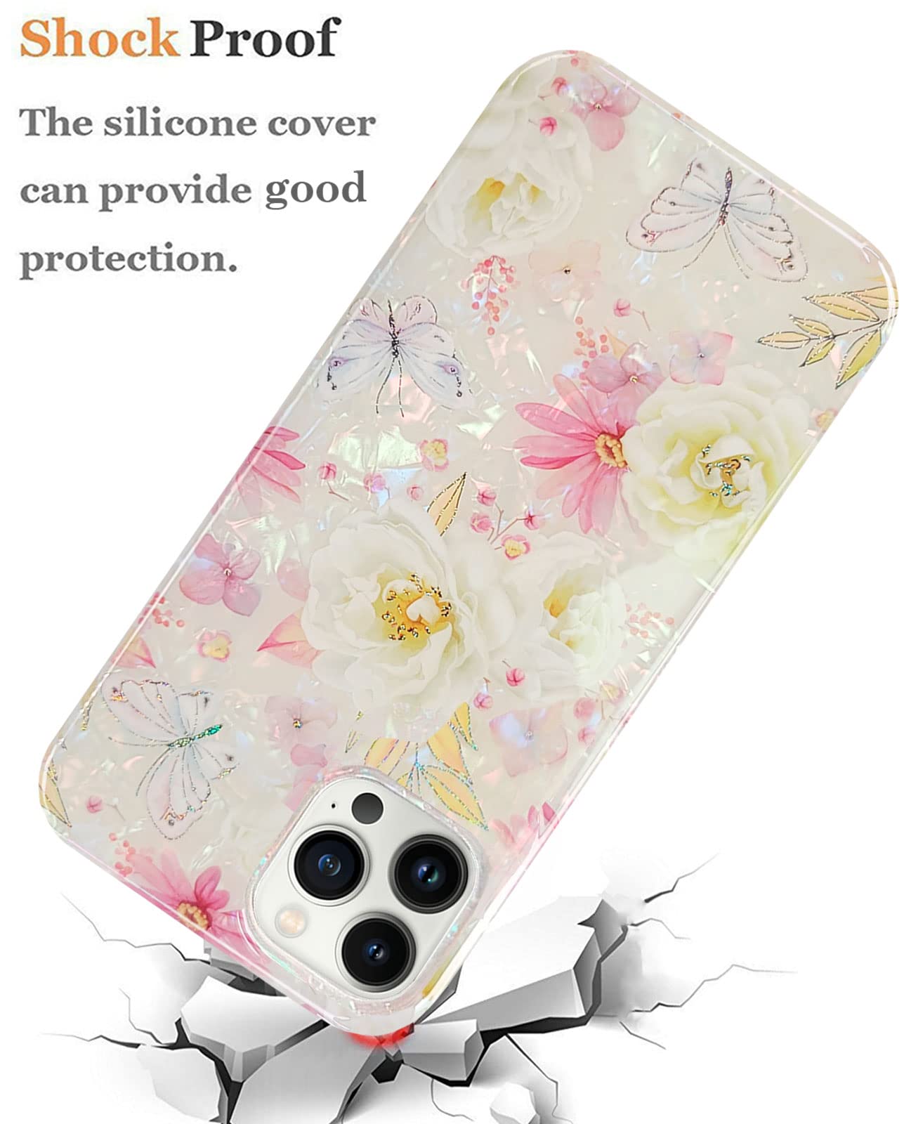 J.West Compatible With Iphone 13 Pro Max Case 6.7 Inch,Luxury Sparkle Glitter Translucent Clear Colorful Opal Pearly Thinfoil Design Shiny Floral Print Soft Silicone Cover For Women Girls Slim Tpu Protective Phone Casefeatures: Durable Vibrant Color Pink Floral Butterfly Patterned Print Flexible Fashion Case For Iphone 13 Pro Max Case. The Garden Flowers Pattern Design For Iphone 13 Pro Max:Stylish Pink White Flowers With Shiny Butterfly Pattern Pink Floral Embossed Design Case Provides Both Style And Protection For Your Phone From Unexpected Shocks In Daily Use. High Quality Material Ensures Great Durability For Long-Lasting And Scratch-Resistant. Easy To Install And Take Off,. This Beautiful Case For Iphone 13 Pro Max Adds Style To Your Personality And Is A Perfect Gift For Your Family, Friends, And Loved One Lightweight Thin Design Makes It Pocket-Friendly And Supporting Wireless Charging With The Case.Skin-Friendly Sense,And Sturdy Grip. Specifications: Suitable For: Iphone 13 Pro Max 6.7 Inch (2021 Release)Material: Shock-Absorbent Tpu Package: 1X Iphone 13 Pro Max Case