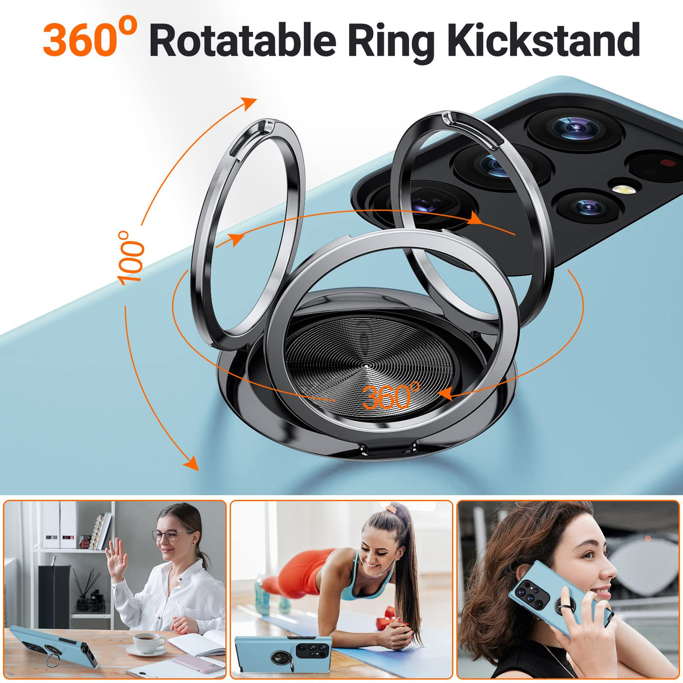 Jame For S23 Ultra Case, Slim Soft Bumper Case For Galaxy S23 Ultra, With Ring Holder Kickstand For Samsung S23 Ultra Case, Mili