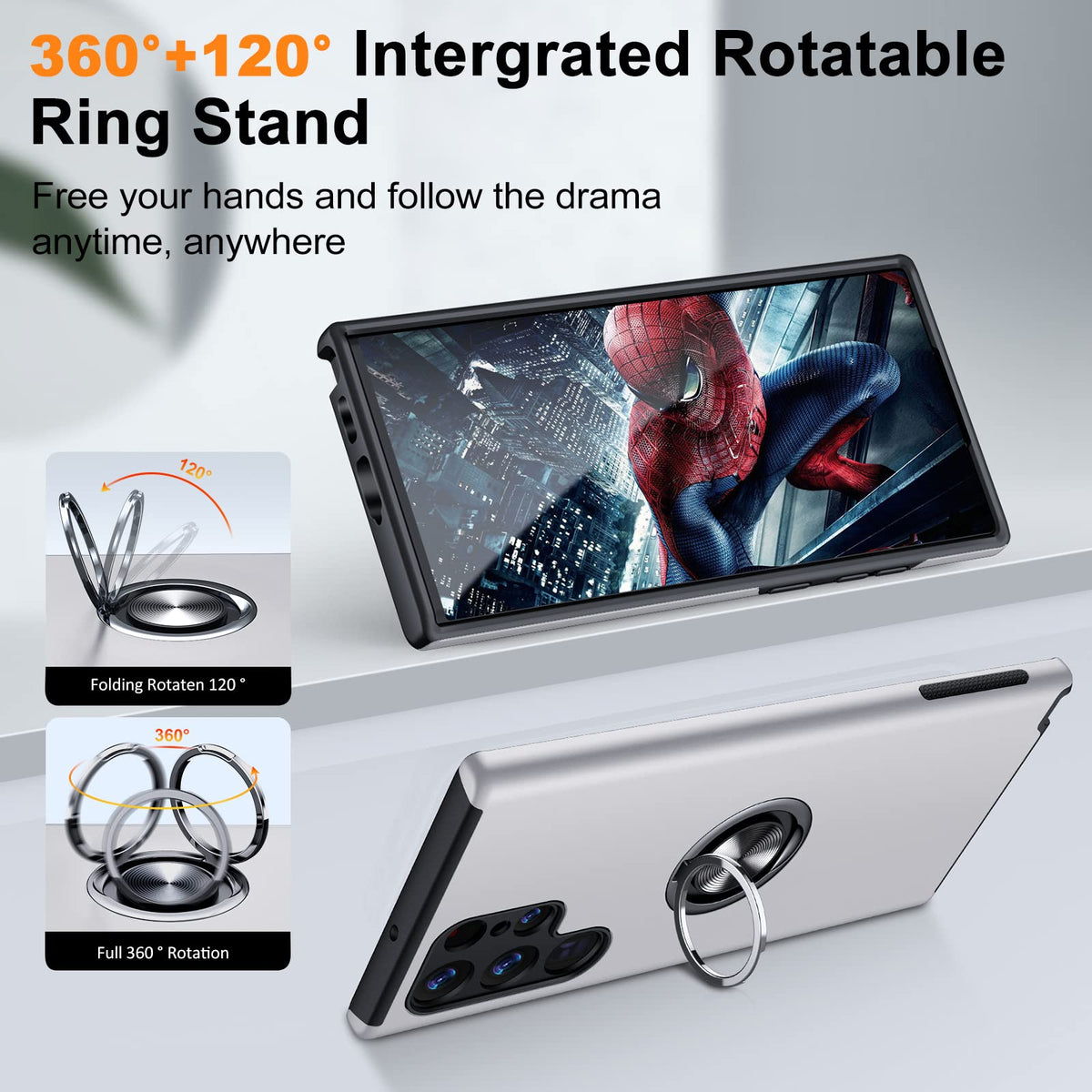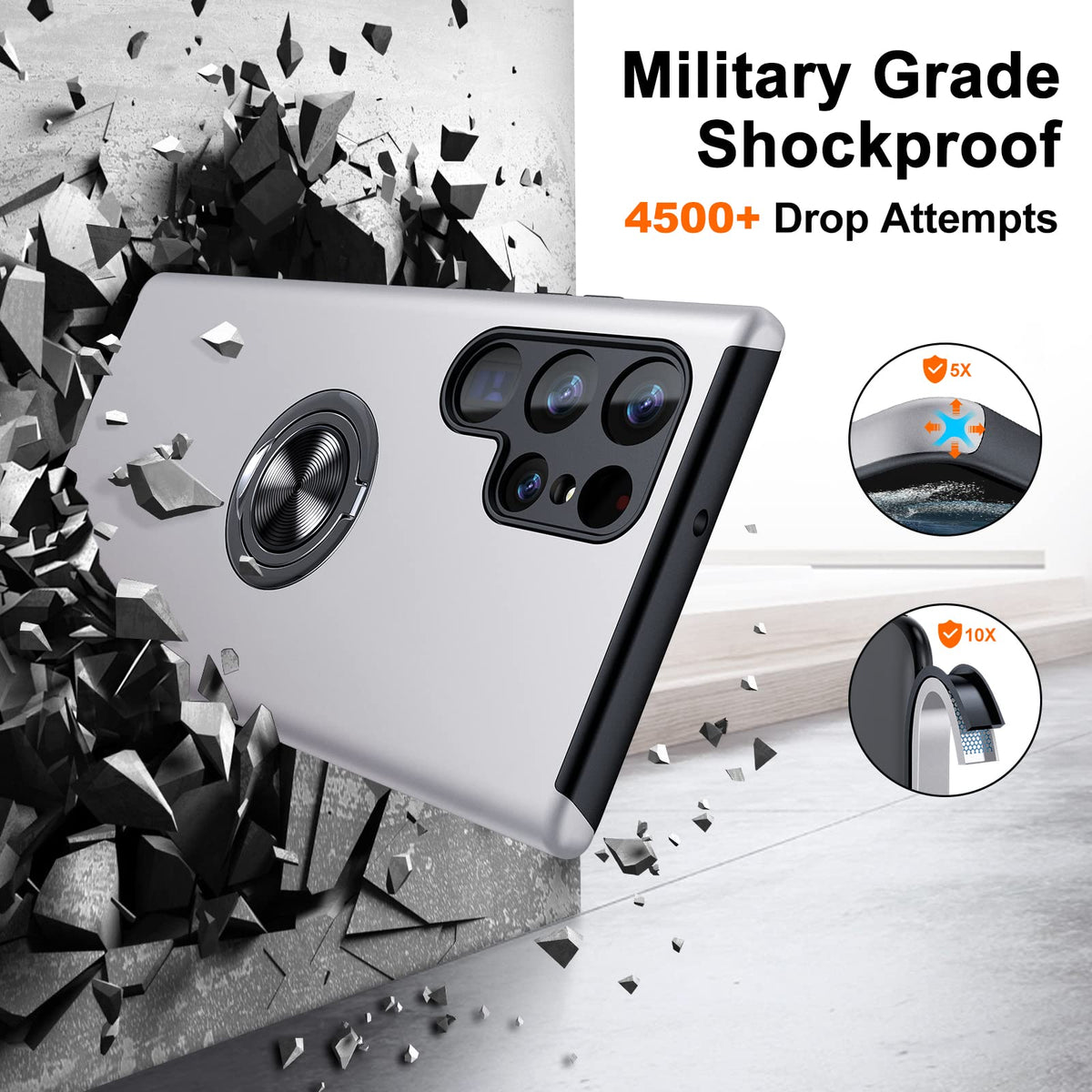 Jame For Samsung Galaxy S22 Ultra Case, [Not For S22 Or S22 Plus], Slim Soft Bumper Protective Case For Samsung S22 Ultra Case, With Invisible Ring Holder Kickstand For Galaxy S22 Ultra Case, Silver