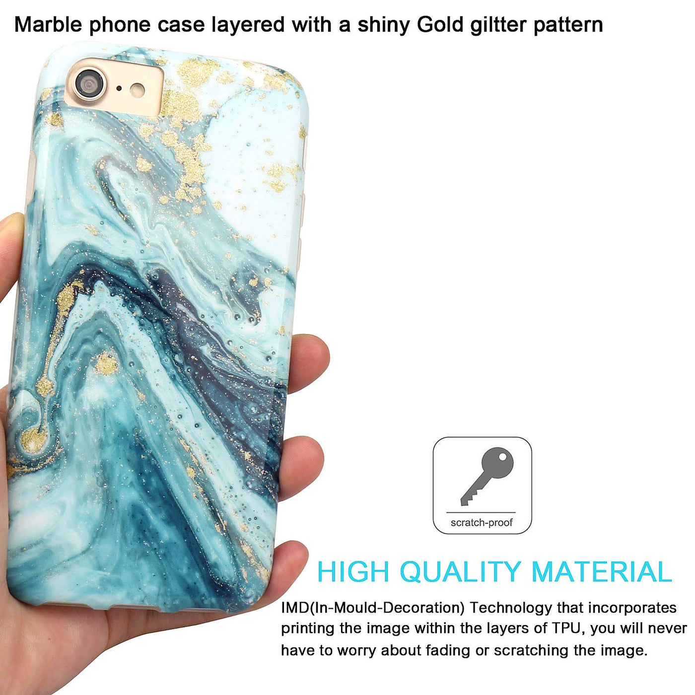Jiaxiufen Iphone Se 2022 Case,Iphone Se 2020 Case, Gold Sparkle Glitter Blue Marble Desgin Slim Shockproof Flexible Cover Phone