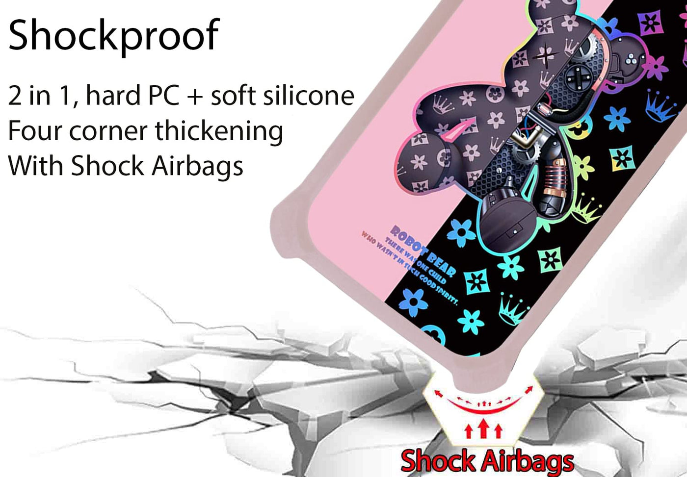 Q: What materials are used in the construction of this phone case?A: This phone case features a combination of a PC hard back panel, a soft silicone frame, and a metal support finger ring. These materials provide durability and a comfortable grip.