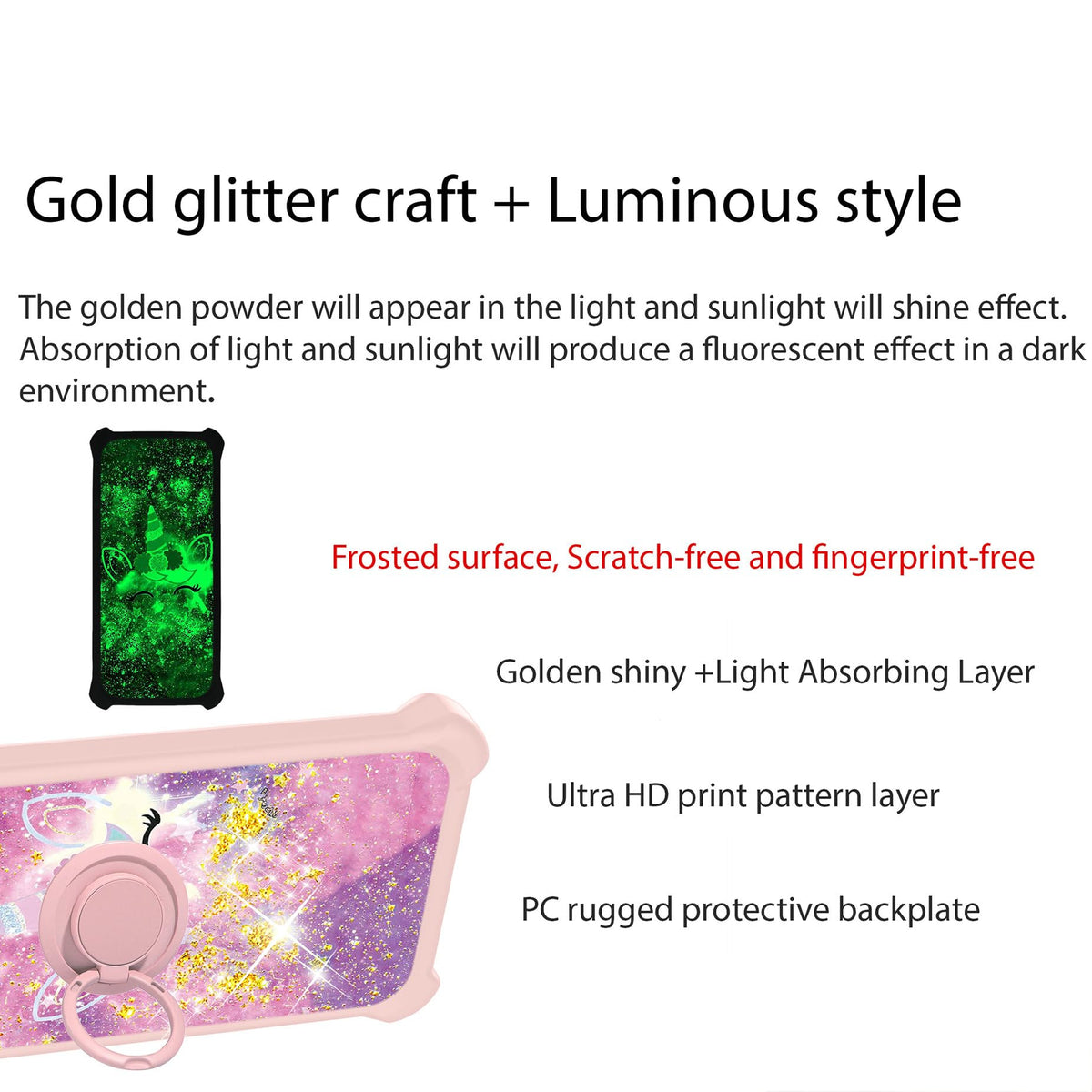 Case For Vortex Hd65 Plus Case Compatible With Vortex Hd65 Plus Phone Case Cover [With Tempered Glass Screen Protector][Ring Support][Gold Glitter+Luminous] Jsf-Djs
