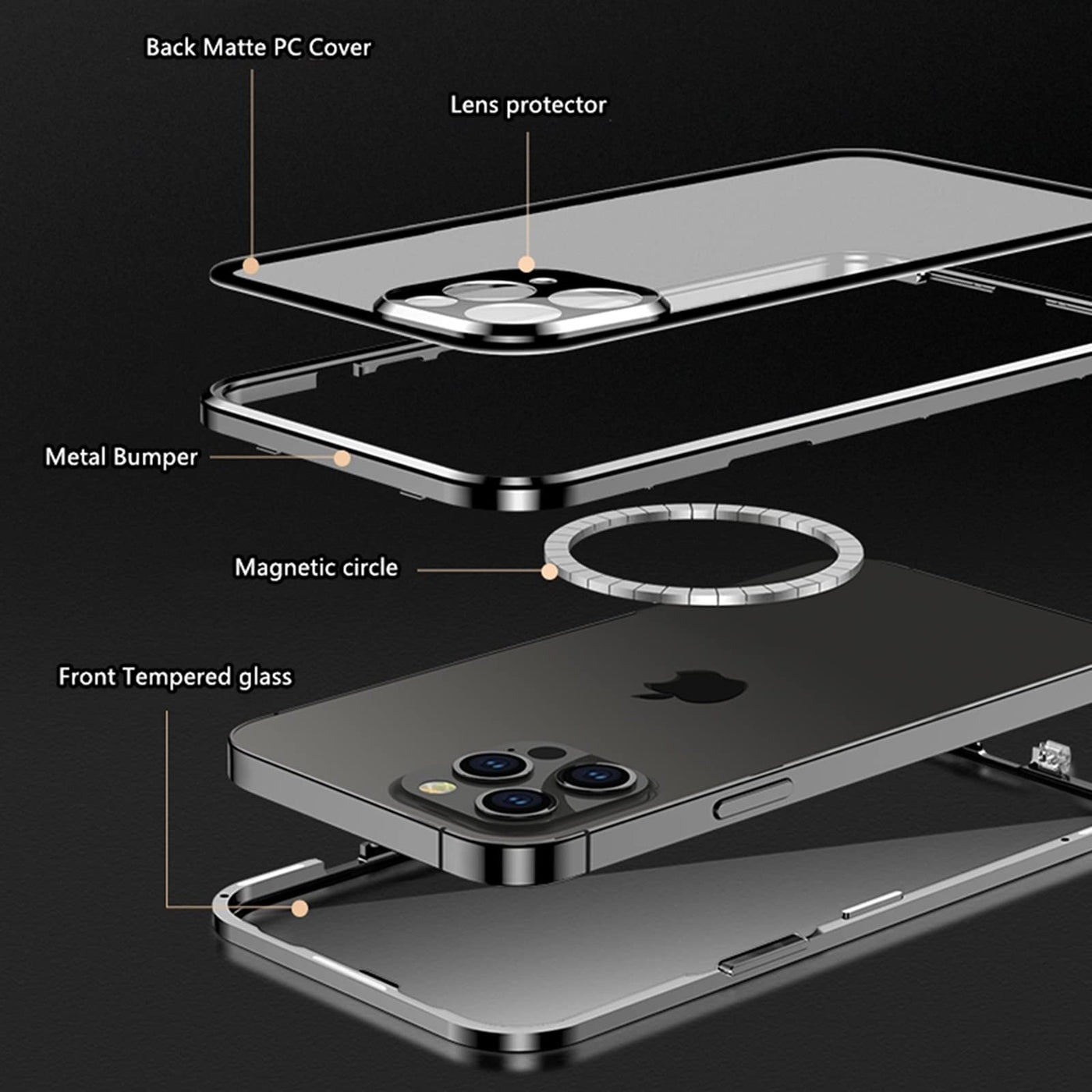 Jonwelsy Case For Iphone 13 Pro, 360 Degree Double Sided Protection Compatible With Magsafe Magnetic Adsorption Metal Bumper Fro