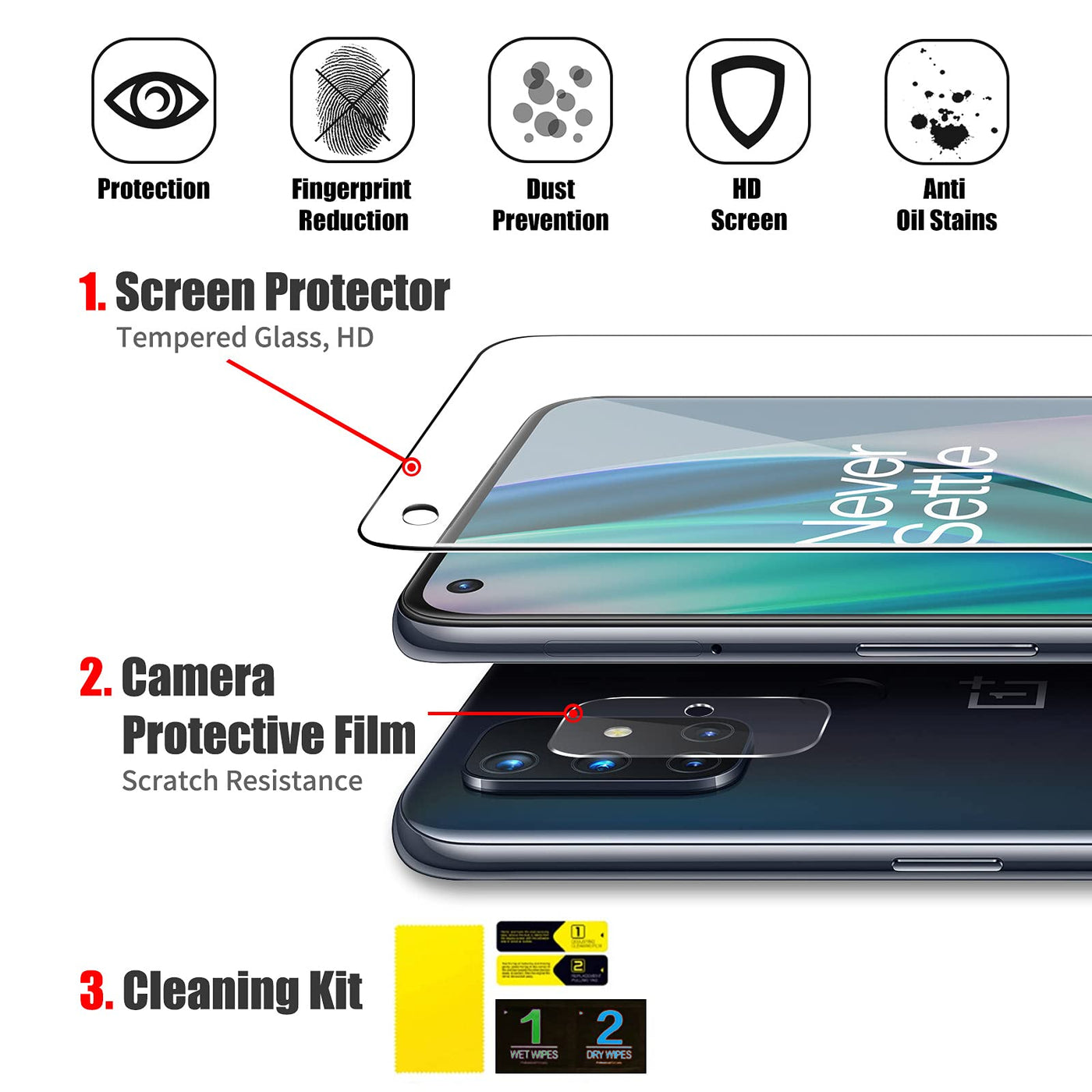 Jusy [3P] Oneplus Nord N10 5G Case & Tempered Glass Screen Protector & Camera Protector For 1+ Nord N10, Protective Case With Ro