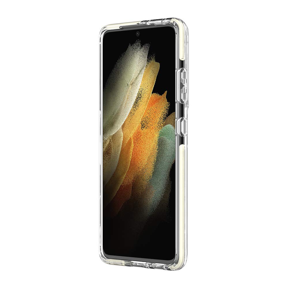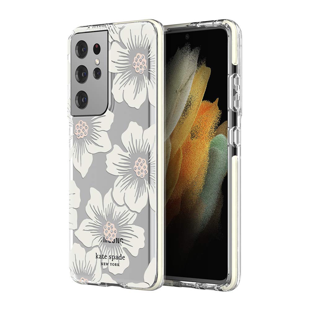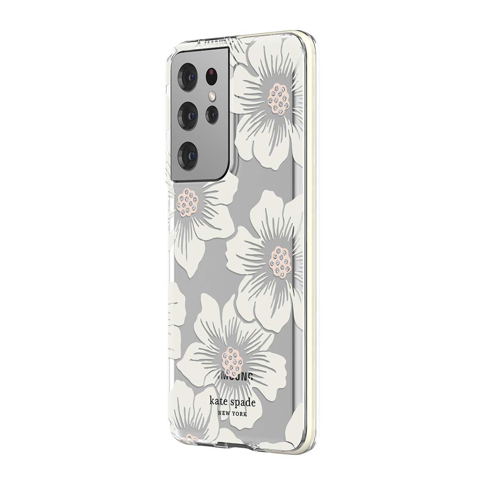 Kate Spade New York Defensive Hardshell Case Compatible With Samsung Galaxy S21 Ultra 5G Hollyhock Floral Clear/Cream With Stones/Cream Bumper