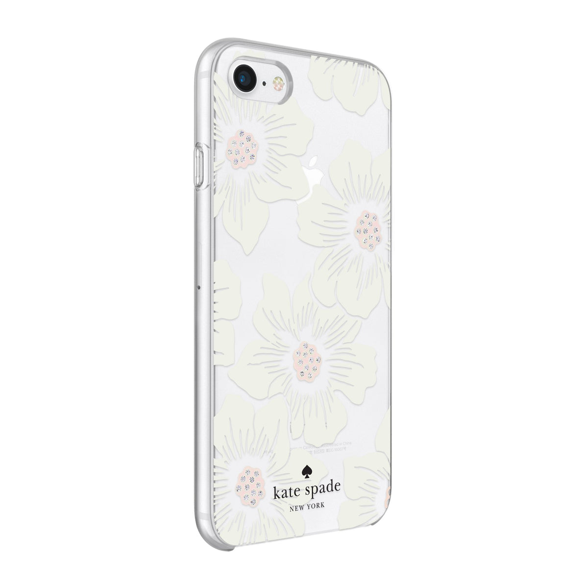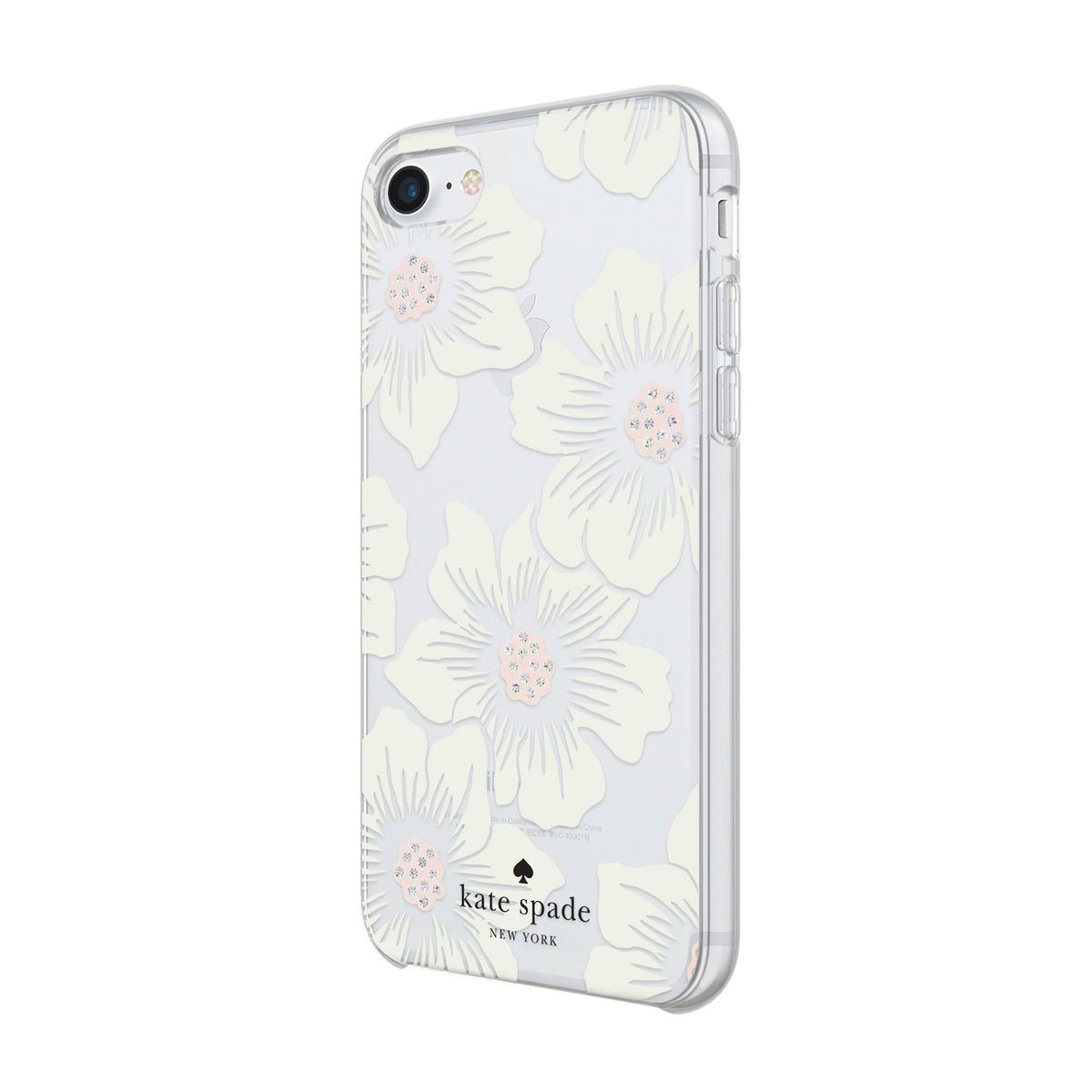 Kate Spade New York Phone Case|For Apple Iphone 8, Iphone 7, Iphone 6S, And Iphone 6|Protective Phone Cases With Slim Design, Drop Protection,And Floral Print Hollyhock Cream/Blush/Crystal Gems/Clear