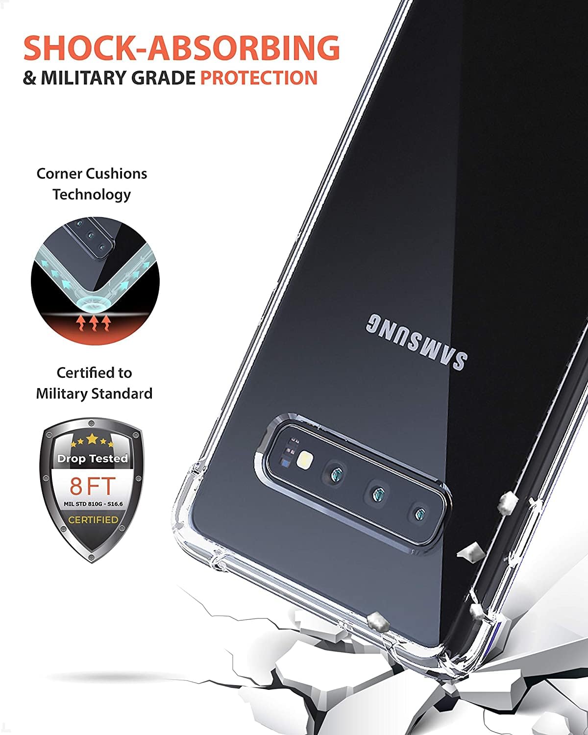 Kiomy Clear Case For Samsung Galaxy S10 Airbag Corners Shockproof Bumper Protective Phone Cover, Hybrid Design Hard Pc Back With