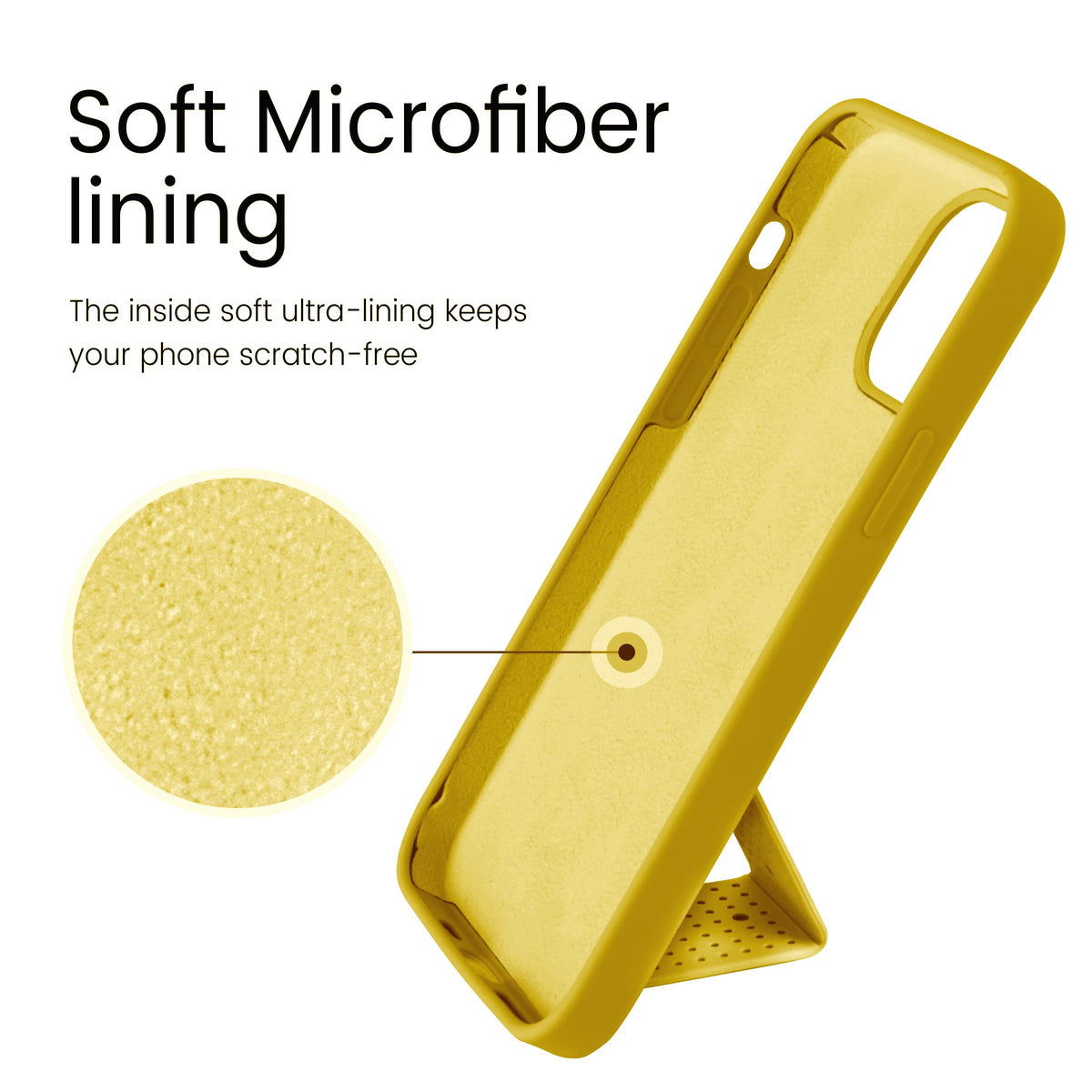 Q: What type of protection does the case offer?A: The LAUDTEC Silicone Kickstand Case offers full body protection with a microfiber cushion inside, 1mm raised bezel edges around the screen and camera, effectively reducing the impact from falls and resisting abrasions and scratches.