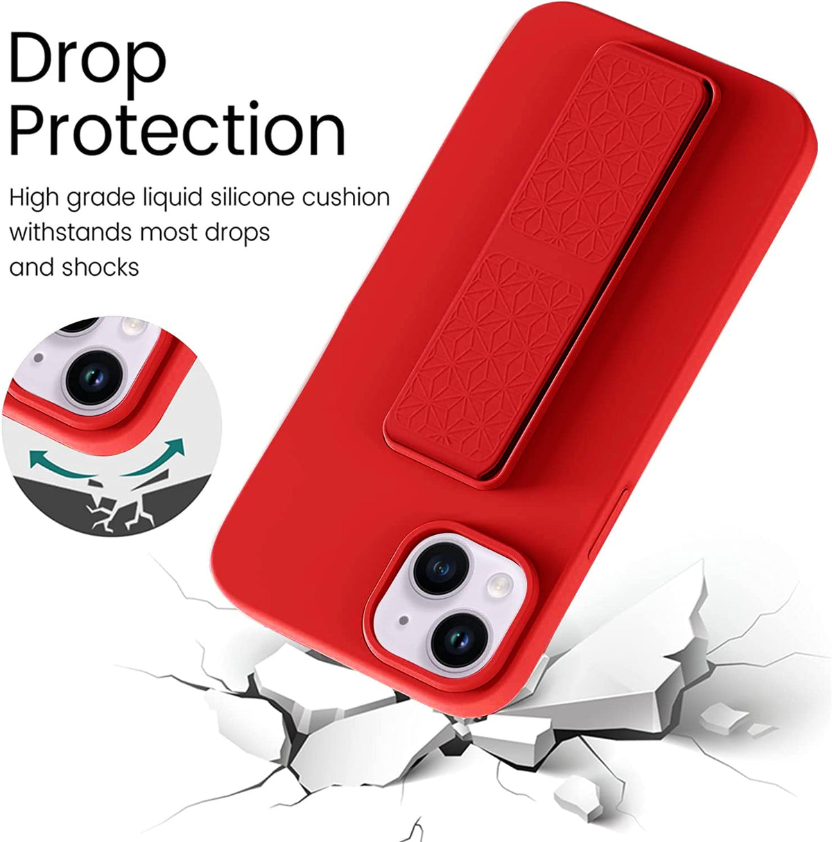 Laudtec Silicone Kickstand Case Compatible With Iphone 14 Case Vertical And Horizontal Stand Hand Strap Metal Kickstand, Flexibl