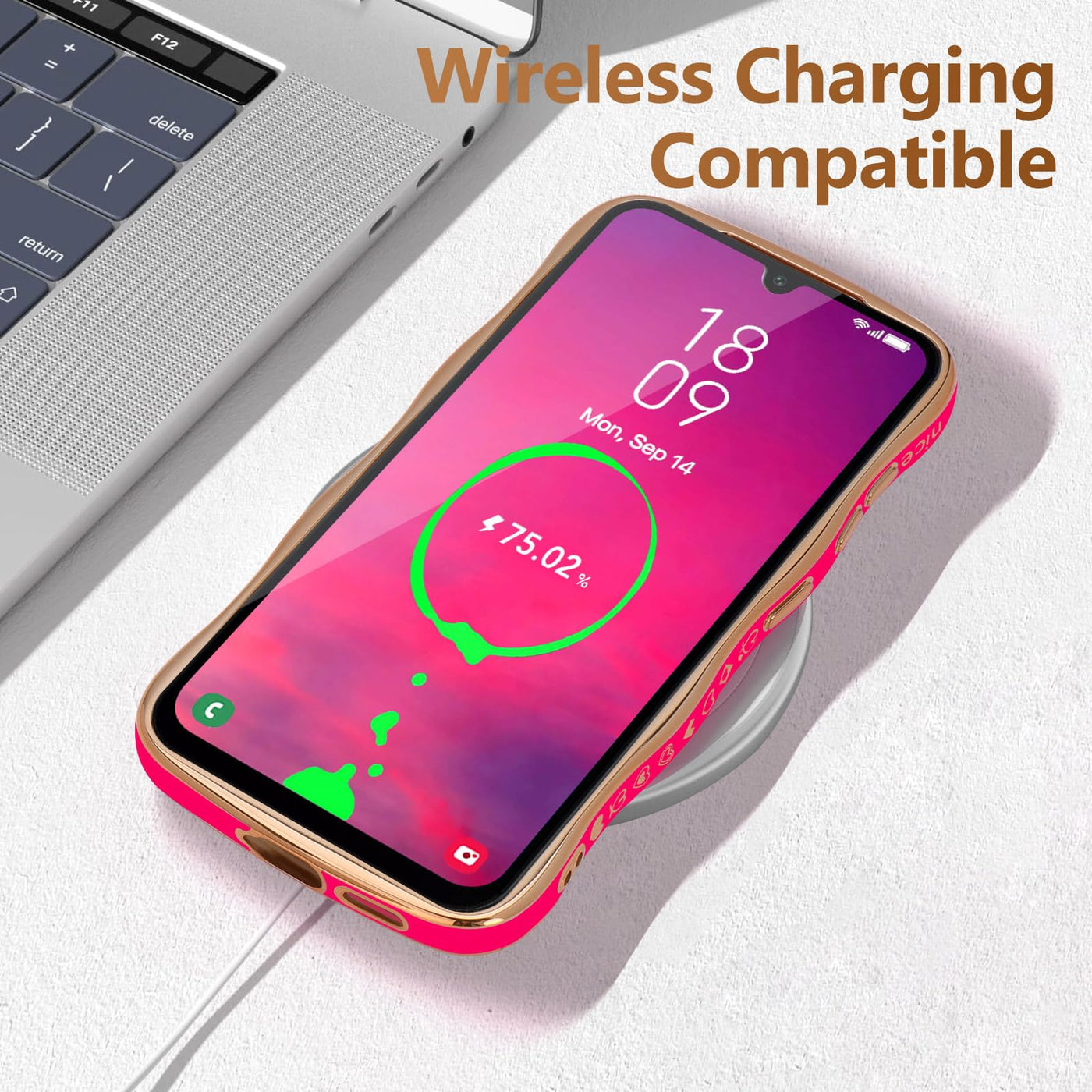 Q: What makes the LCHULLE case stylish and eye-catching?A: The LCHULLE case features a trendy plating wavy design with elegant shiny gold electroplating and an adorable love heart pattern, making your phone stand out while offering protection.