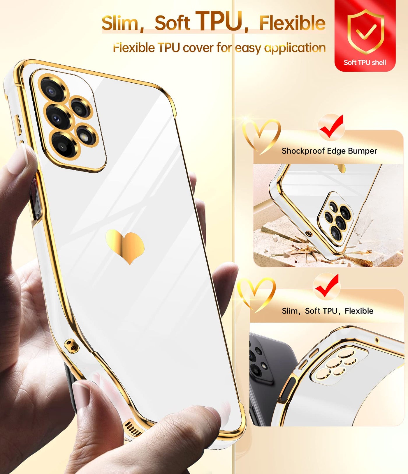 Leyi For Galaxy A23 5G Case Samsung Galaxy A23 5G Case With Screen Protector [2 Pcs]+ Full Camera Protection, Love Heart Plating