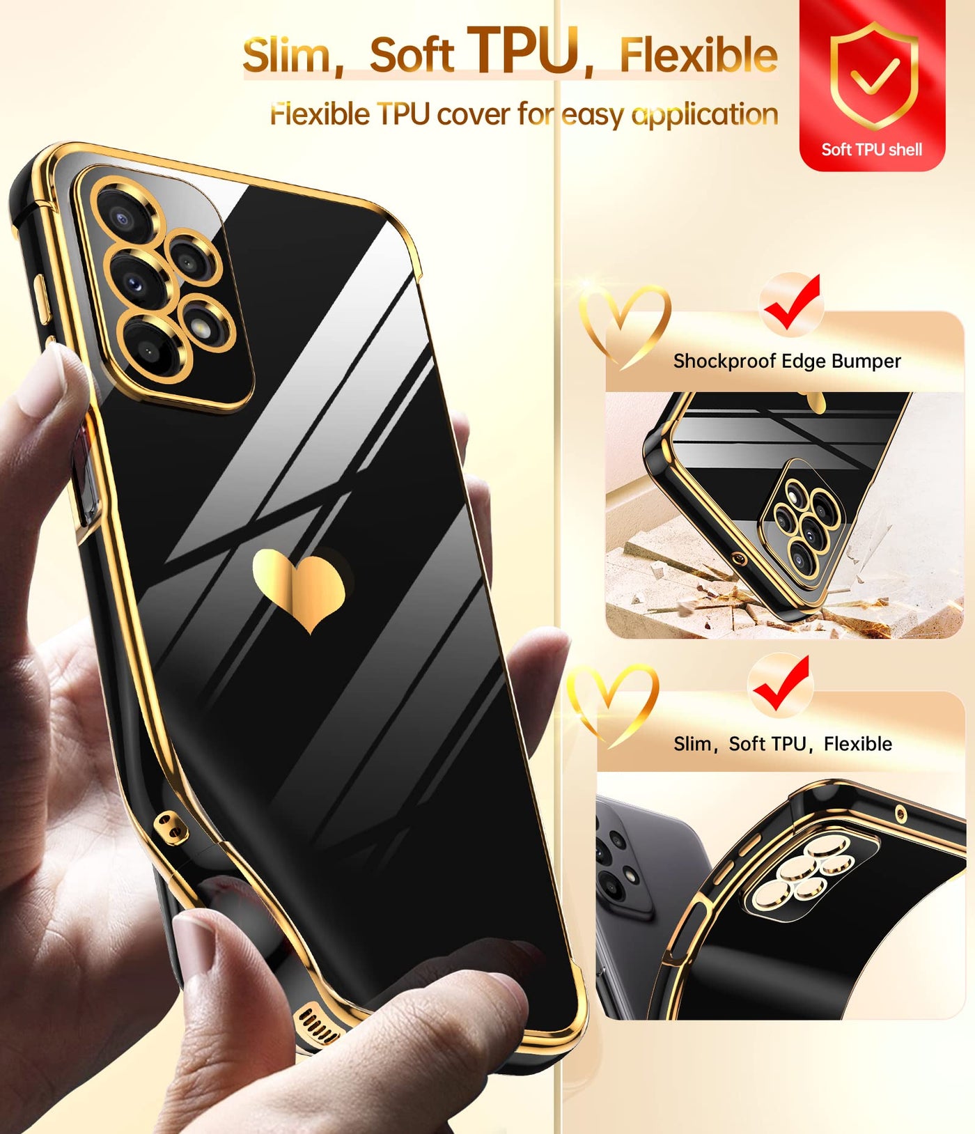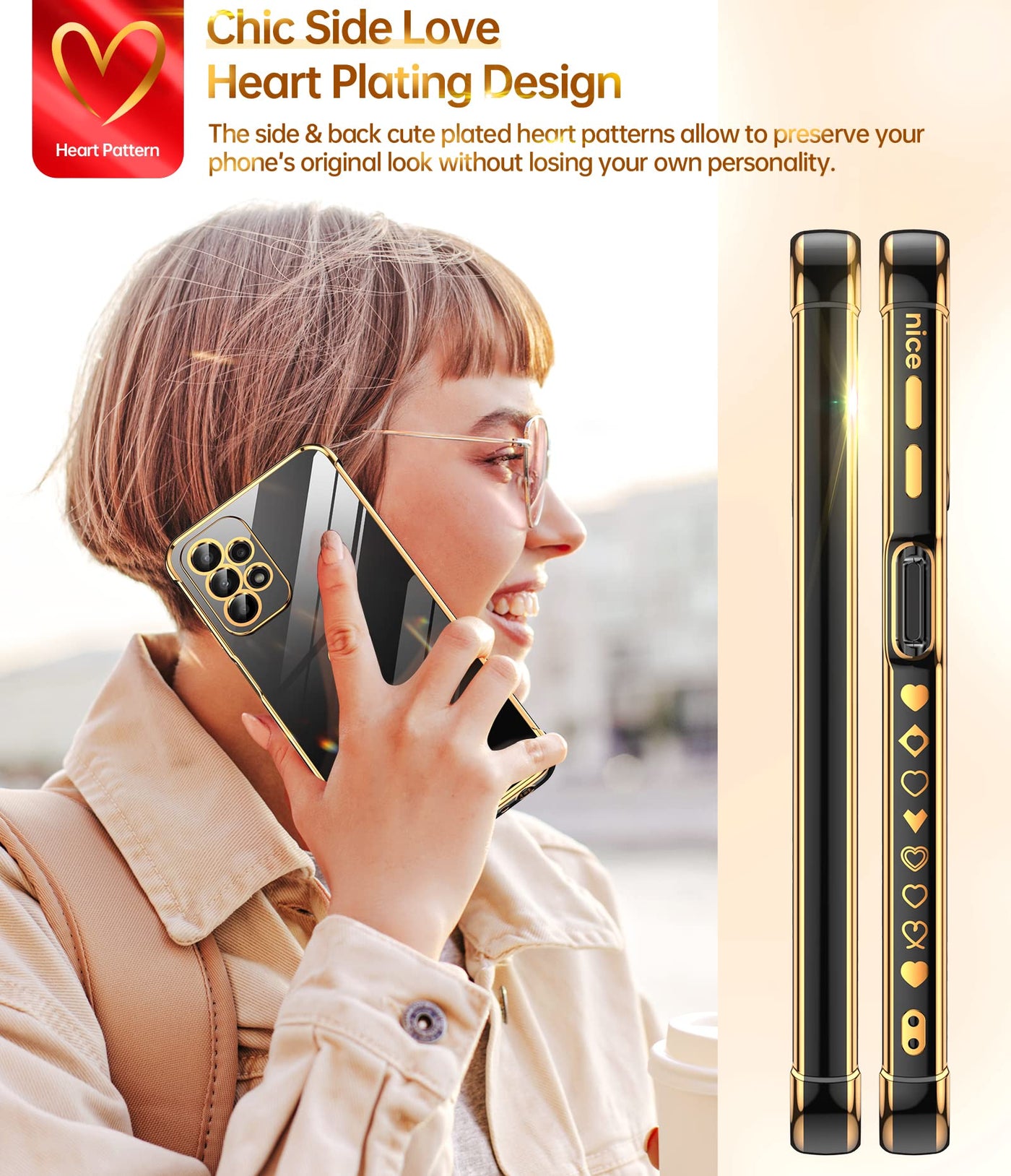 Leyi For Galaxy A23 5G Phone Case: With Screen Protector [2 Pcs]+ Full Camera Protection, Love Heart Plating Girly Women Cute Lu