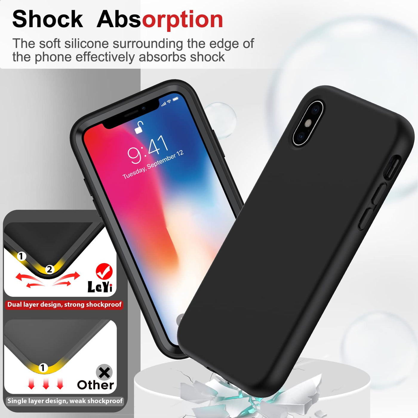 Leyi For Iphone 10 Case, Iphone X Case With [2 X Tempered Glass Screen Protector] For Men, Full Body Shockproof Soft Liquid Sili