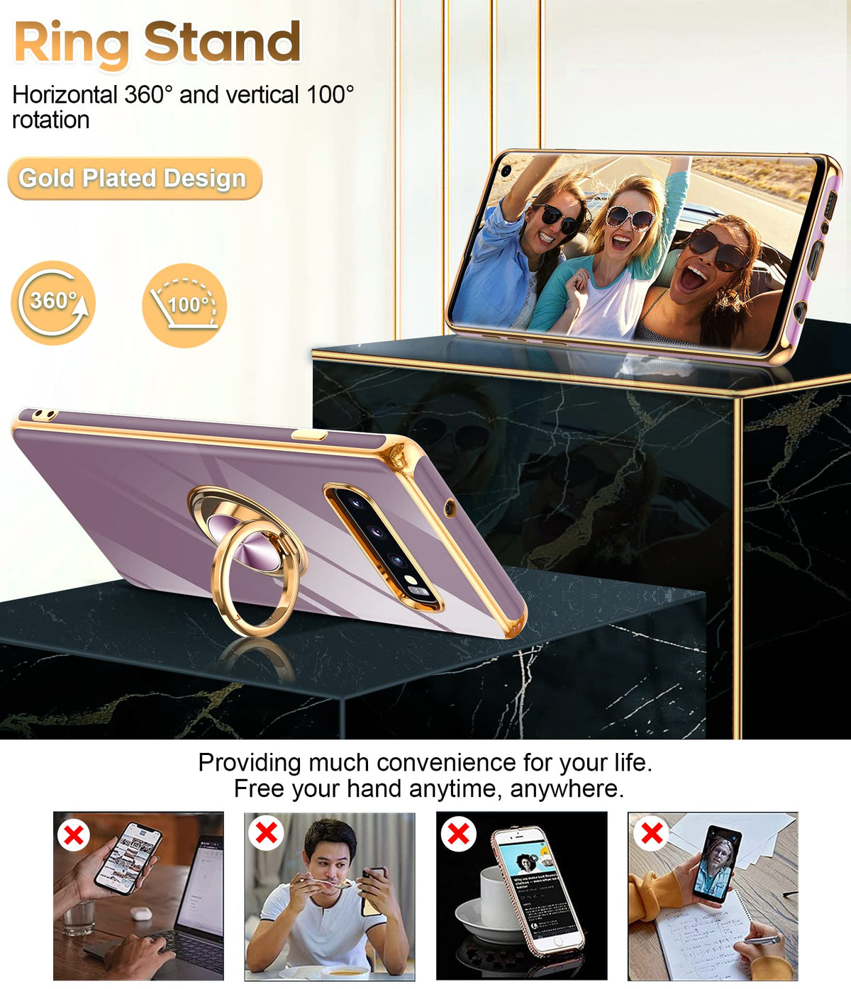 Compatible Model: Only Compatible With Samsung Galaxy S10 | Rose Gold Plated Design: The Edge Of The Shell Bumper And The Edge Of The Camera Are Rose Gold Plated, Making The Phone Full Of Luxury, Stylish And Timeless. Slim And Lightweight, Not Bulky, And Easy To Hold. Not Compatible With Wireless Charging | Kickstand Design: The 360