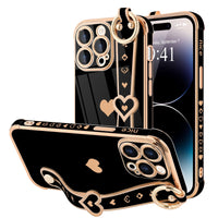 Luxury Stylish Design Llz.Coque Case Is Made Of Quality Soft Tpu Golden Plating Lines And Cute Love Heart Pattern A Strap With Love-Heart Pattern Makes Your Phone More Fashionable, Luxurious And Convenient To Use