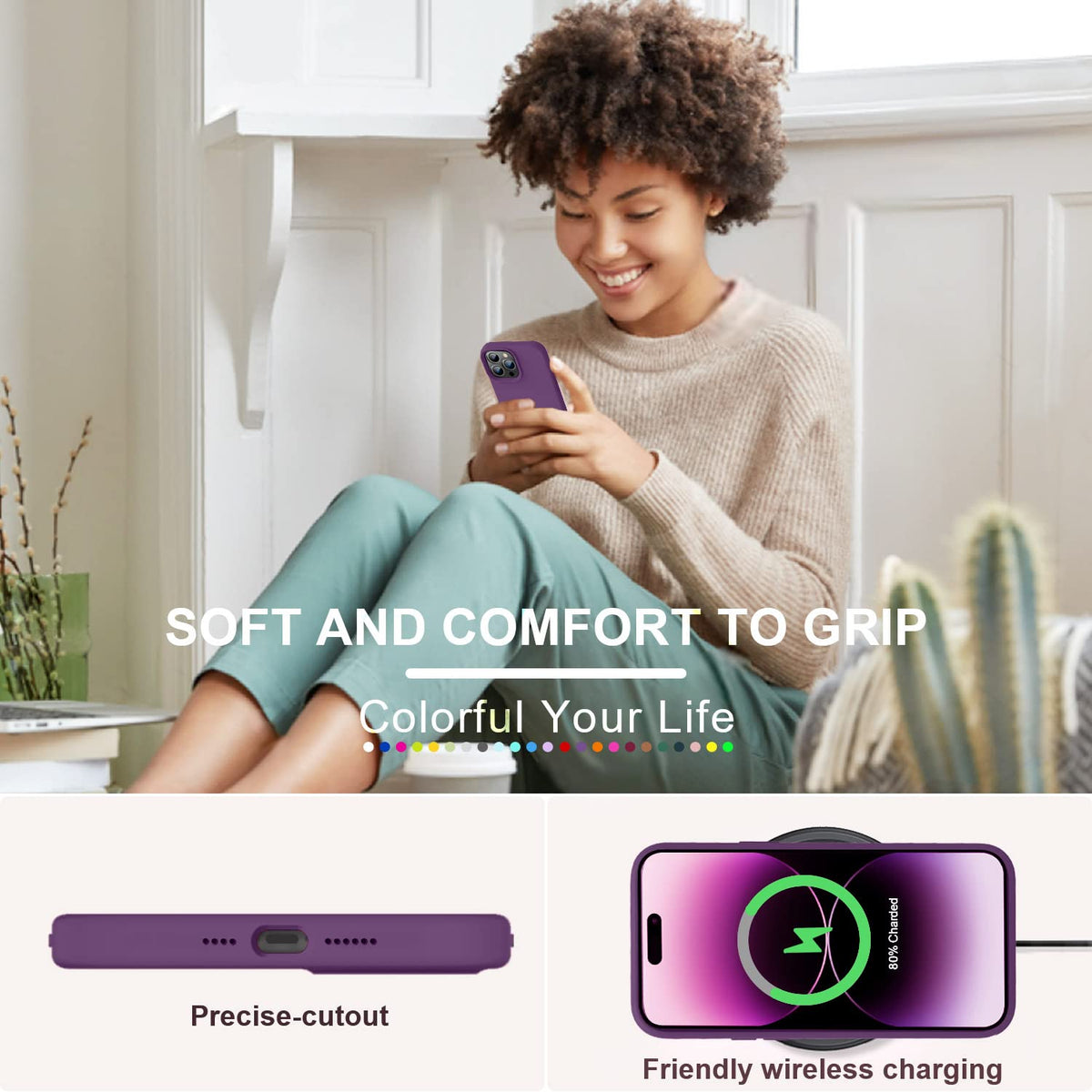 Love 3000 Compatible With Iphone 14 Pro Case With Screen Protector, Slim Premium Liquid Silicone Phone Case For Iphone 14 Pro, Anti-Scratch Velvet Interior] Drop Protection]