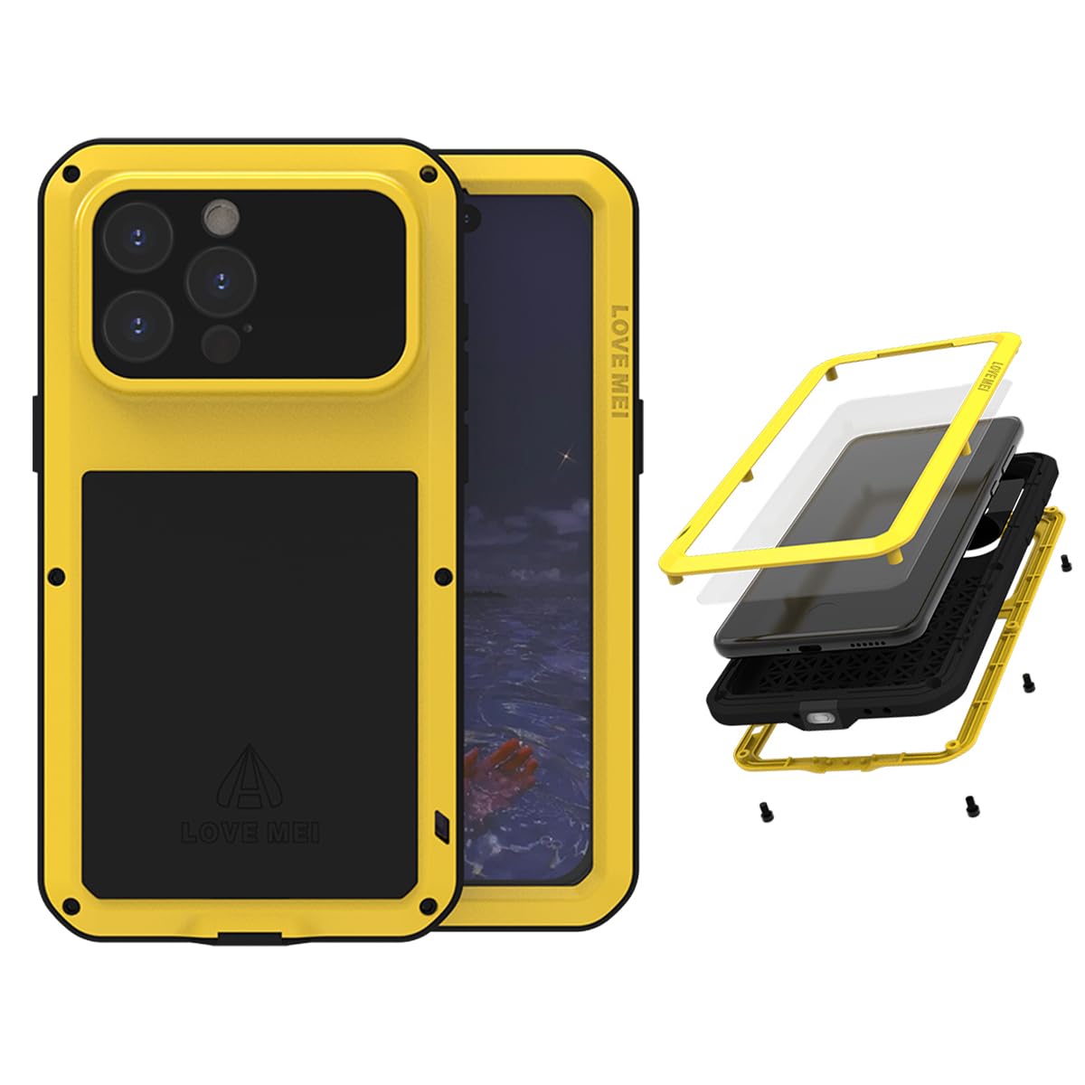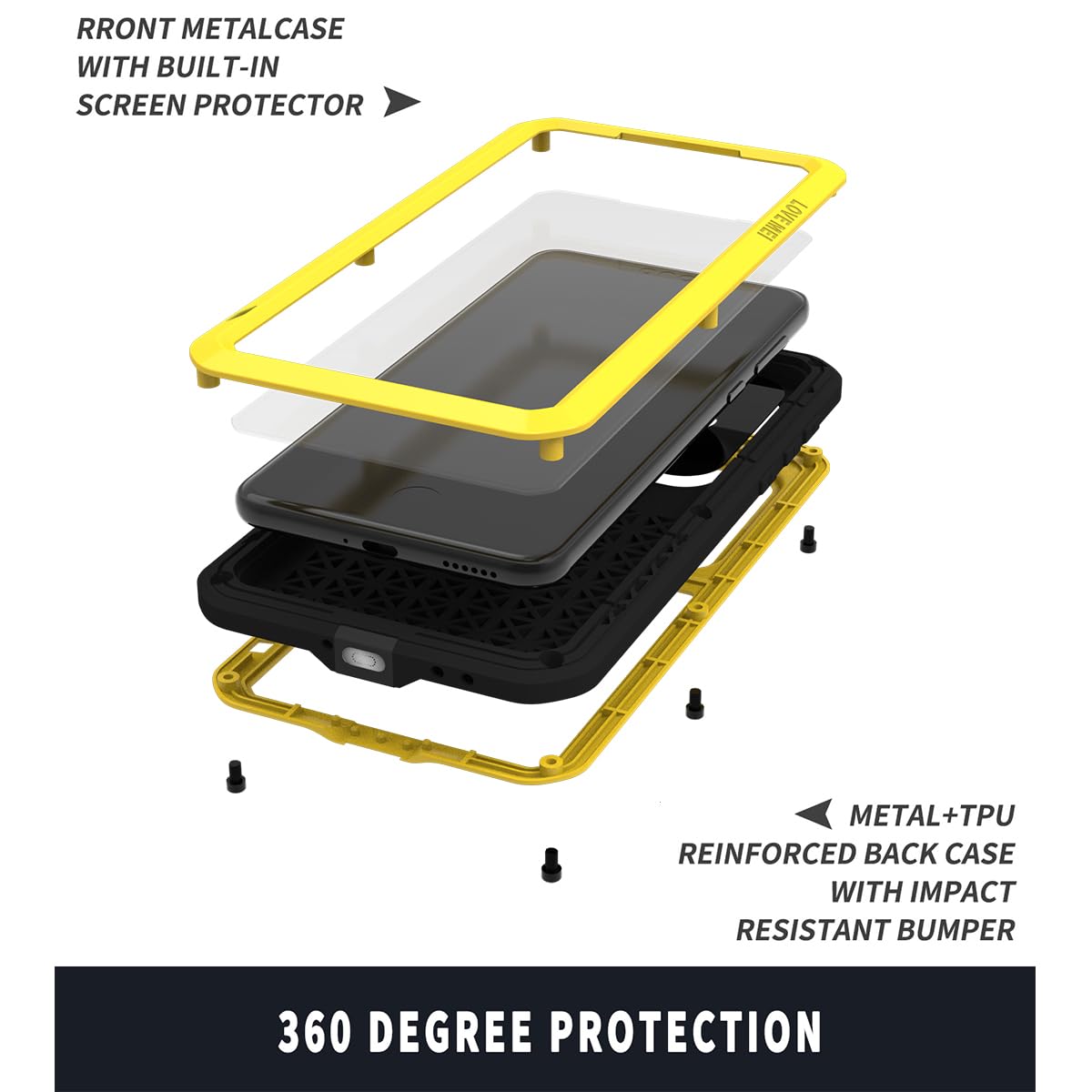 Brand: Love Mei Material: Metal / Aluminum / Silicone / Tempered Glass Main Features: Shockproof, Drop Proof, Dirt Proof, Waterproof, Scratch Proof, Full Body Protections Color : Black, White, Red, Silver,Yellow , Army Green Military Grade Drop Protection: Made Up Of A Heavy-Duty Machined Aluminum Frame, While Inside, Soft Silicone Wraps Around Your Phone, Absorbing And Deflecting Any Shock Your Device Experiences On Impact. Heavy Duty: Made Of Alluminum Through Special Craft Processing, The Visual And Craft Is Perfectly Combined After The Installation. Wireless Charger : Supports Wireless Charging Without Remove The Case. Unique Design Allows Easy Access To All Controls And Ports Without Having To Remove Case. All Buttons, Ports, And Camera Lenses Remain Unrestricted. Easy To Put On And Easy To Take Off. Installation Note: 1. Do Not Tighten The Screws With Too Much Force. It Could Stripe The Threads Or Deform The Rubber Sealing And Compromise Performance. 2. The Product Comes With Built-In Screen Protector. Please Remove Your Own Screen Protector (If You Have One) Before Installing It. Note Weatherproof, Can Simply Protect Your Mobile From The Rain Or The Sudden Water Damage, It Can Face Water Resistant, And Rainproof, But Not Put In Water. Package Includes 1 X Super Sturdy Case,1 X Cleaning Cloth,1 X Lanyard Sling,1 X User Manual (Must Read),1 X Screwdriver