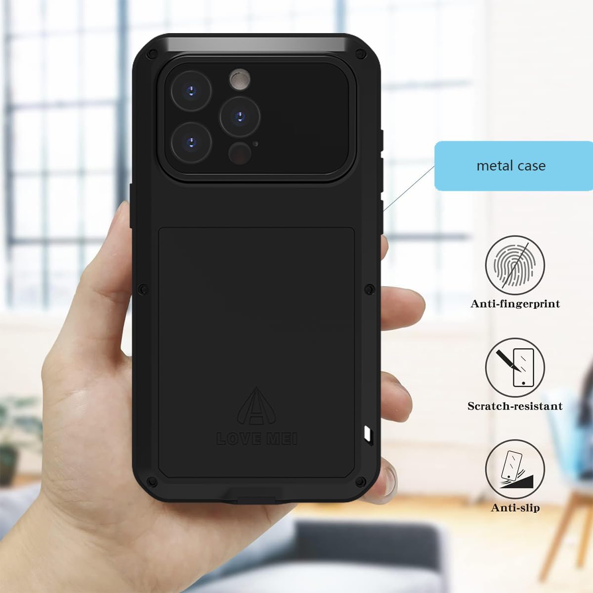 Love Mei For Iphone 15 Pro Max (6.7) Metal Case, Heavy Duty Metal Military Grade Shockproof Dustproof Full Body Case With Built