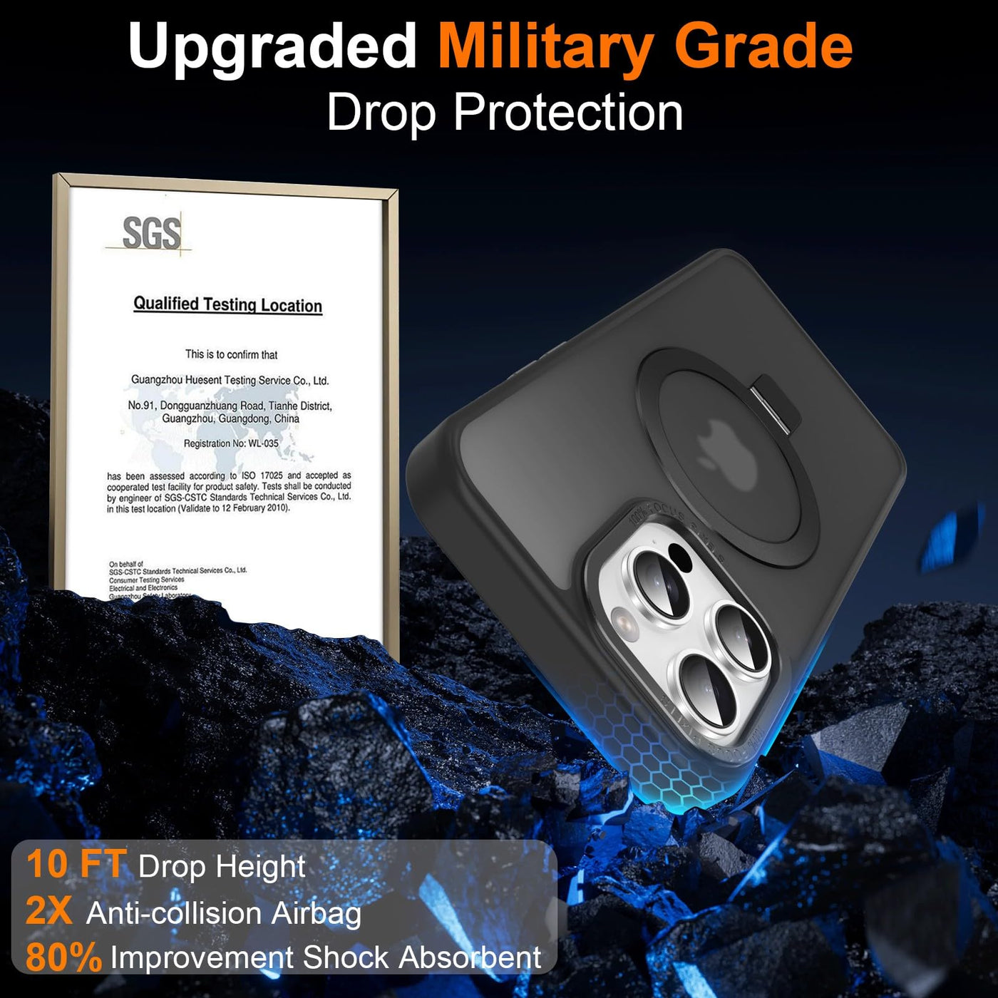 Q: What level of drop protection does the Lufanbis Magnetic iPhone 14 Pro case provide?A: The Lufanbis Magnetic iPhone 14 Pro case offers 8 FT military-grade drop protection, ensuring that your phone is safe from falls and impacts.
