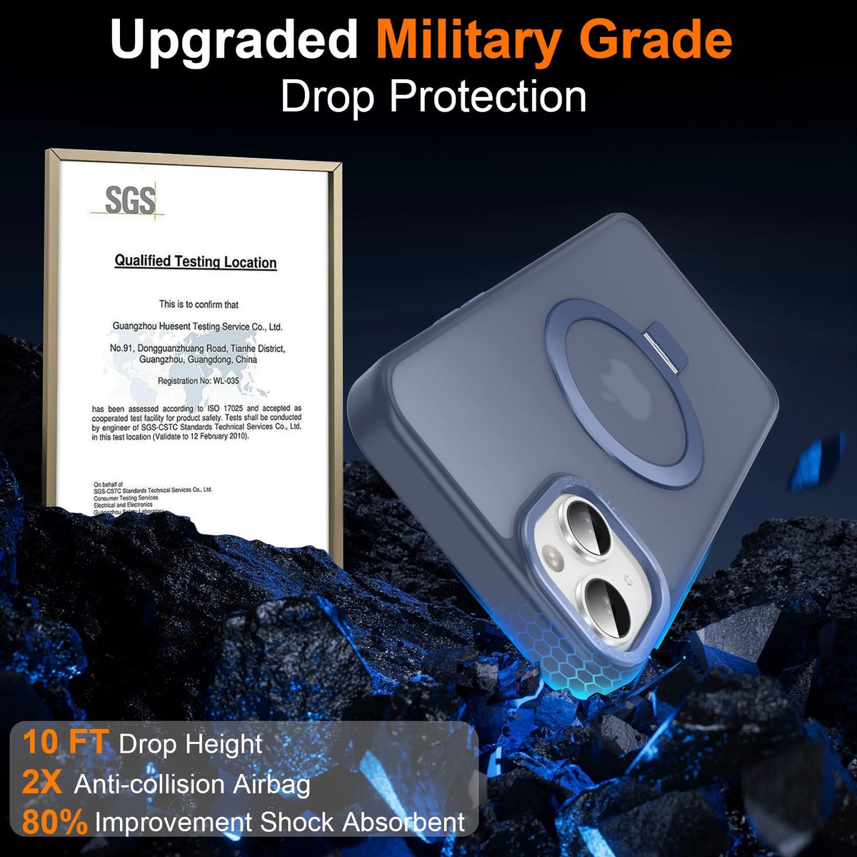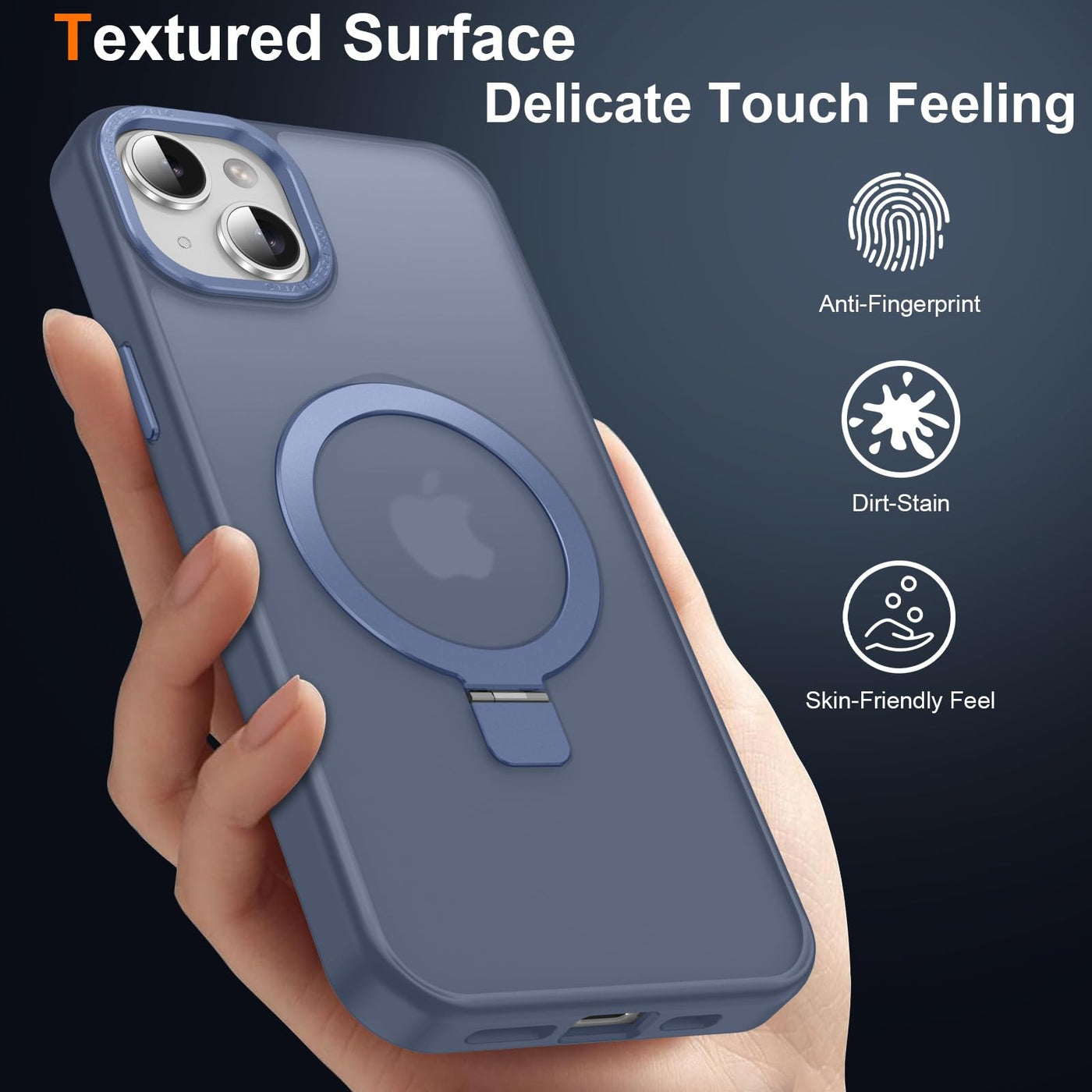 Lufanbis Magnetic For Iphone 15 Case With Ring Stand, [10 Ft Drop Protection] [Velvety Touch] Slim Translucent Matte Back Shockp