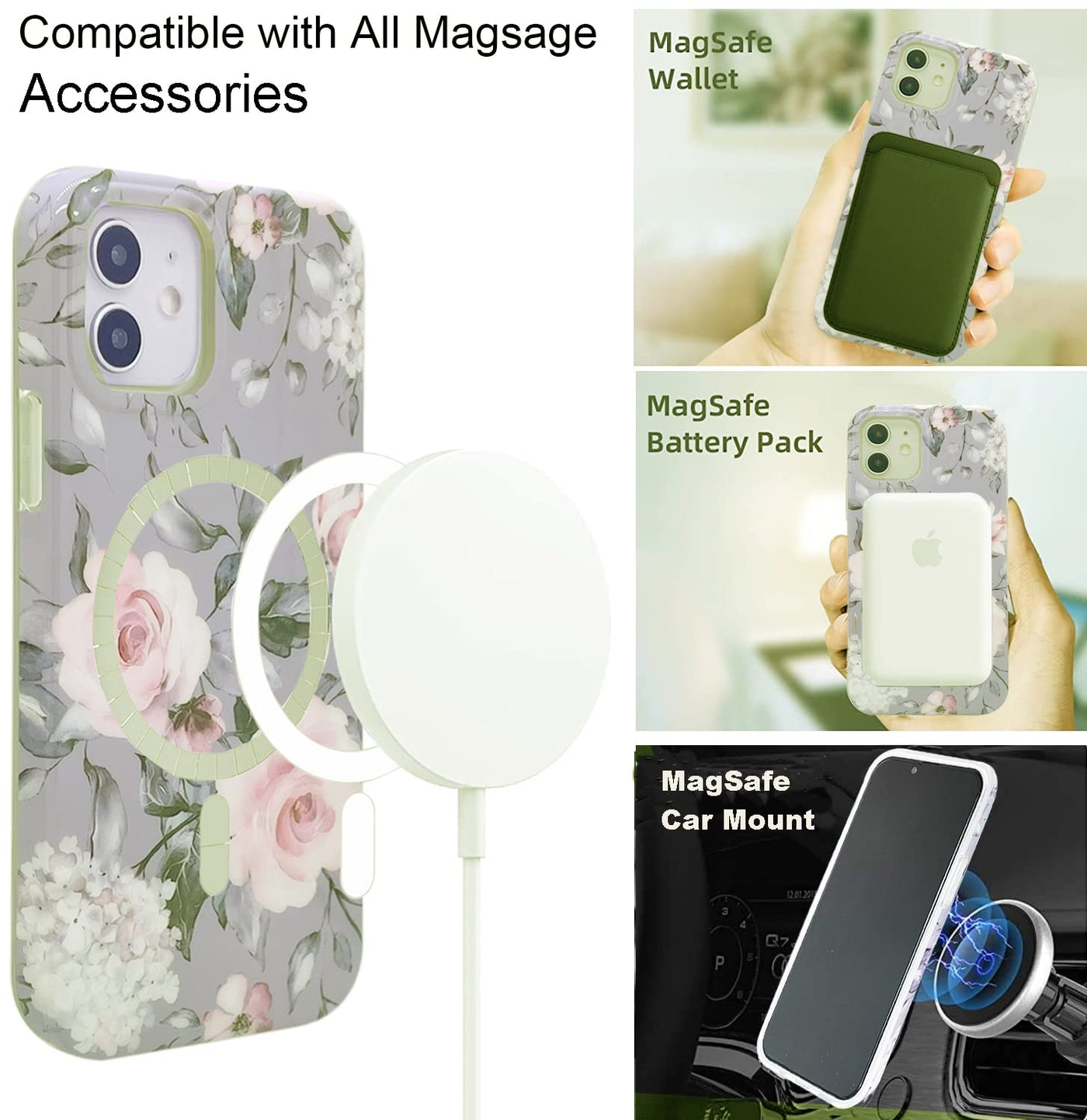 Magnetic Case For Iphone 12/12 Pro 6.1'' Compatible With Magsafe Soft Tpu, Slim, Shockproof, Protective, Cute Gray Pink Floral