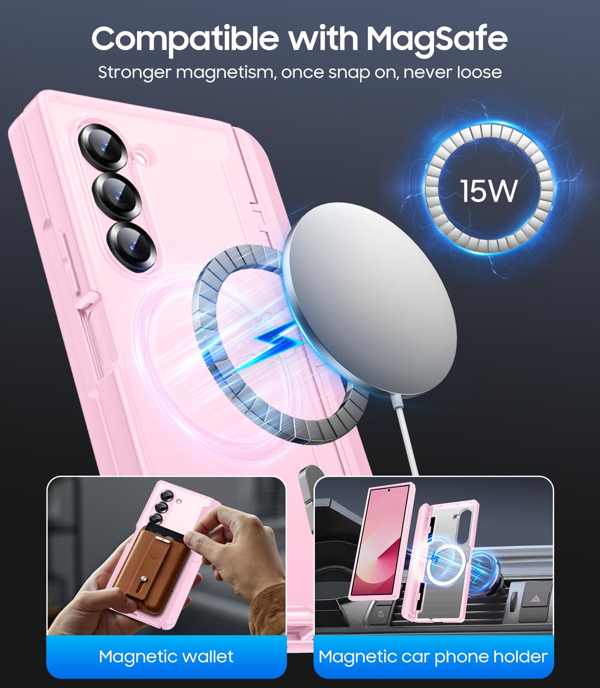 Makavo For Samsung Galaxy Z Fold 6 Case With S Pen Holder, Fit For Magsafe, Built-In Screen Protector, Hinge Cover & Stand, Tran