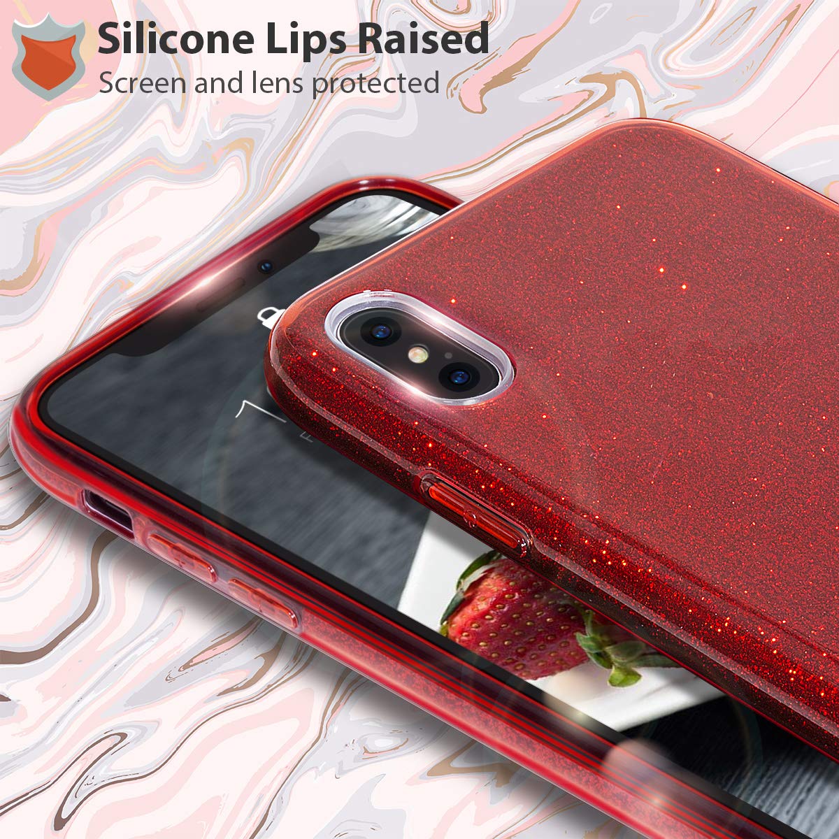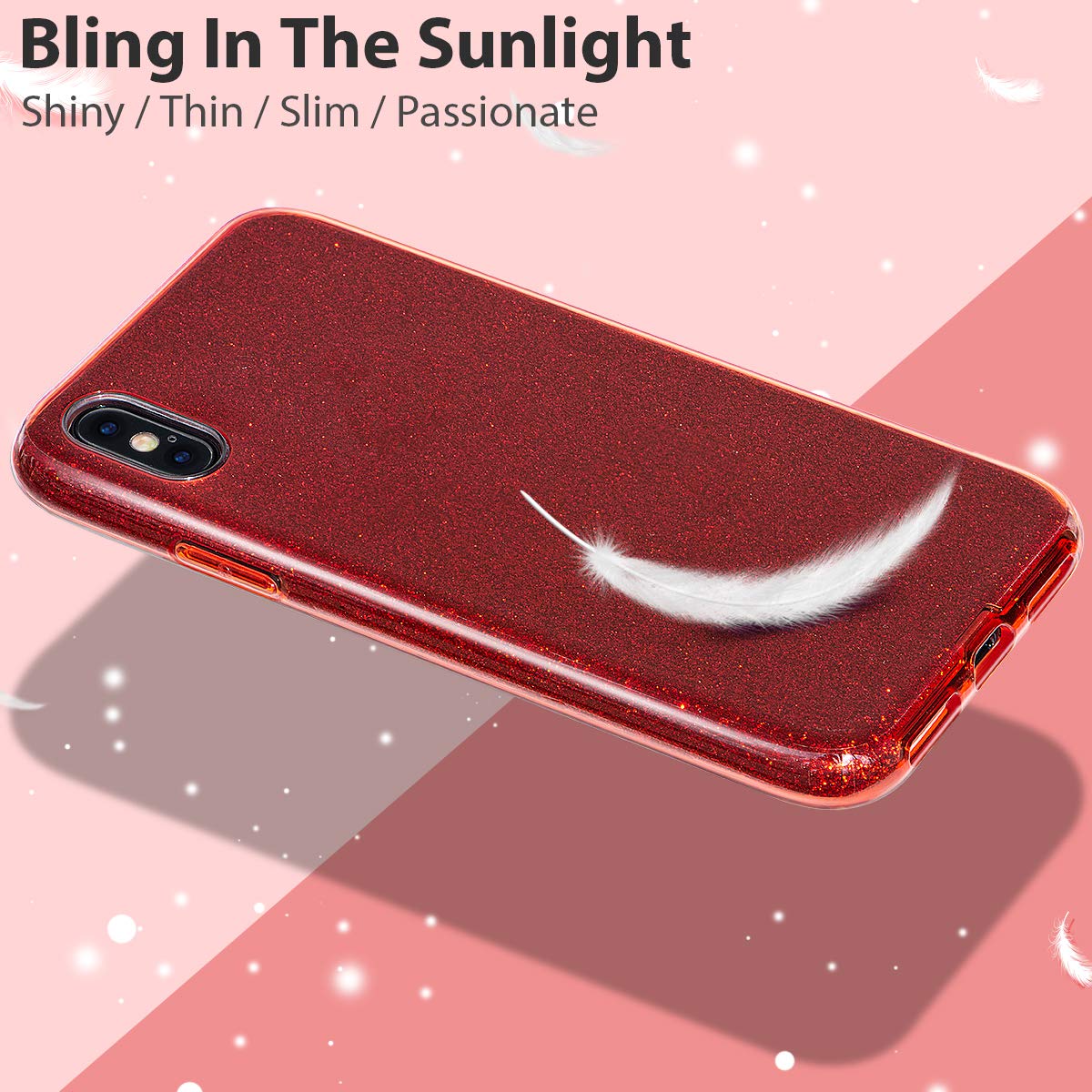 Mateprox Compatible With Iphone Xs Max Case,Bling Sparkle Cute Girls Women Protective Christmas Case (Red)