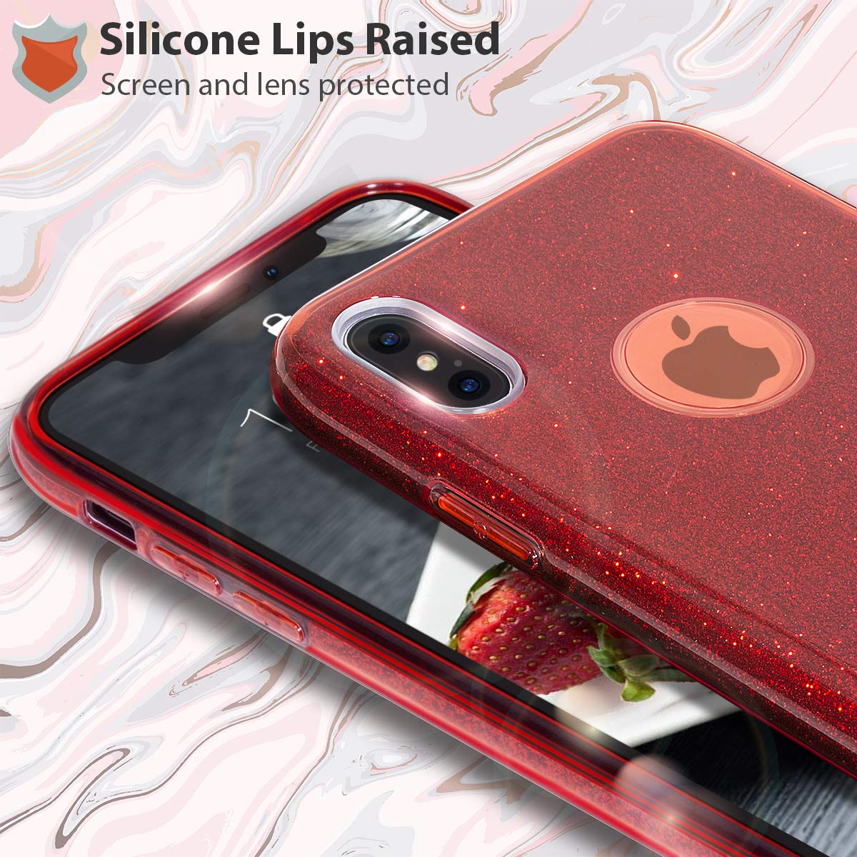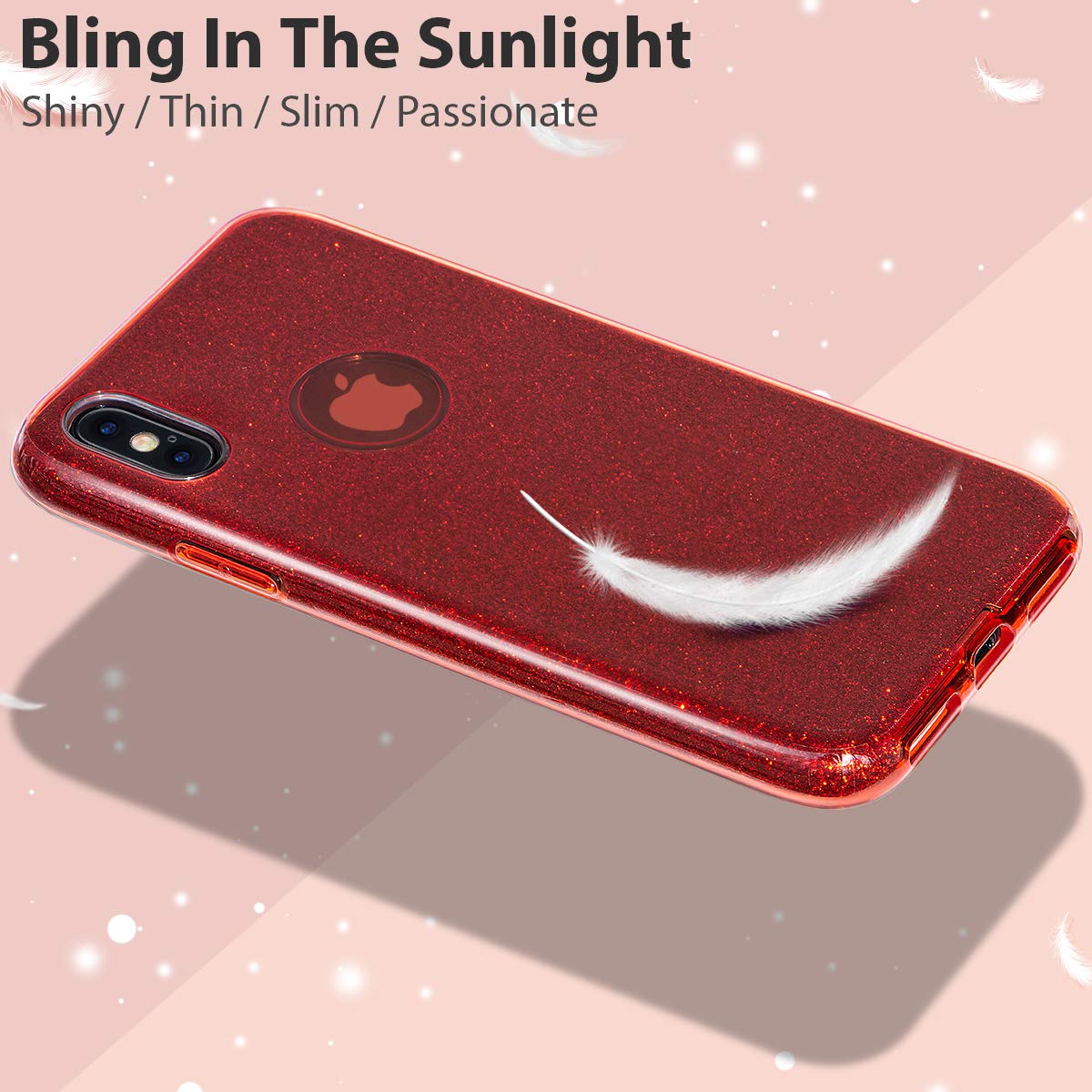 Mateprox Iphone Xs Case,Iphone X Glitter Bling Sparkle Cute Girls Women Protective Christmas Case For Iphone Xs/X 5.8'' Red