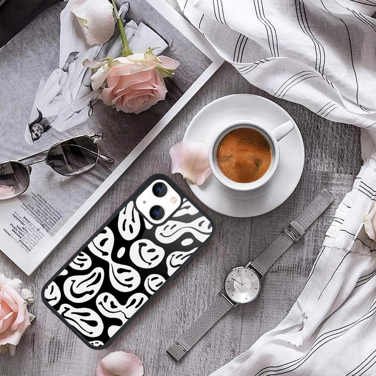 Maycari Compatible With Iphone 13 Case For Children Women Happy Smile Face Hippie Design, Hard Back With Cute Trippy Pattern Sof