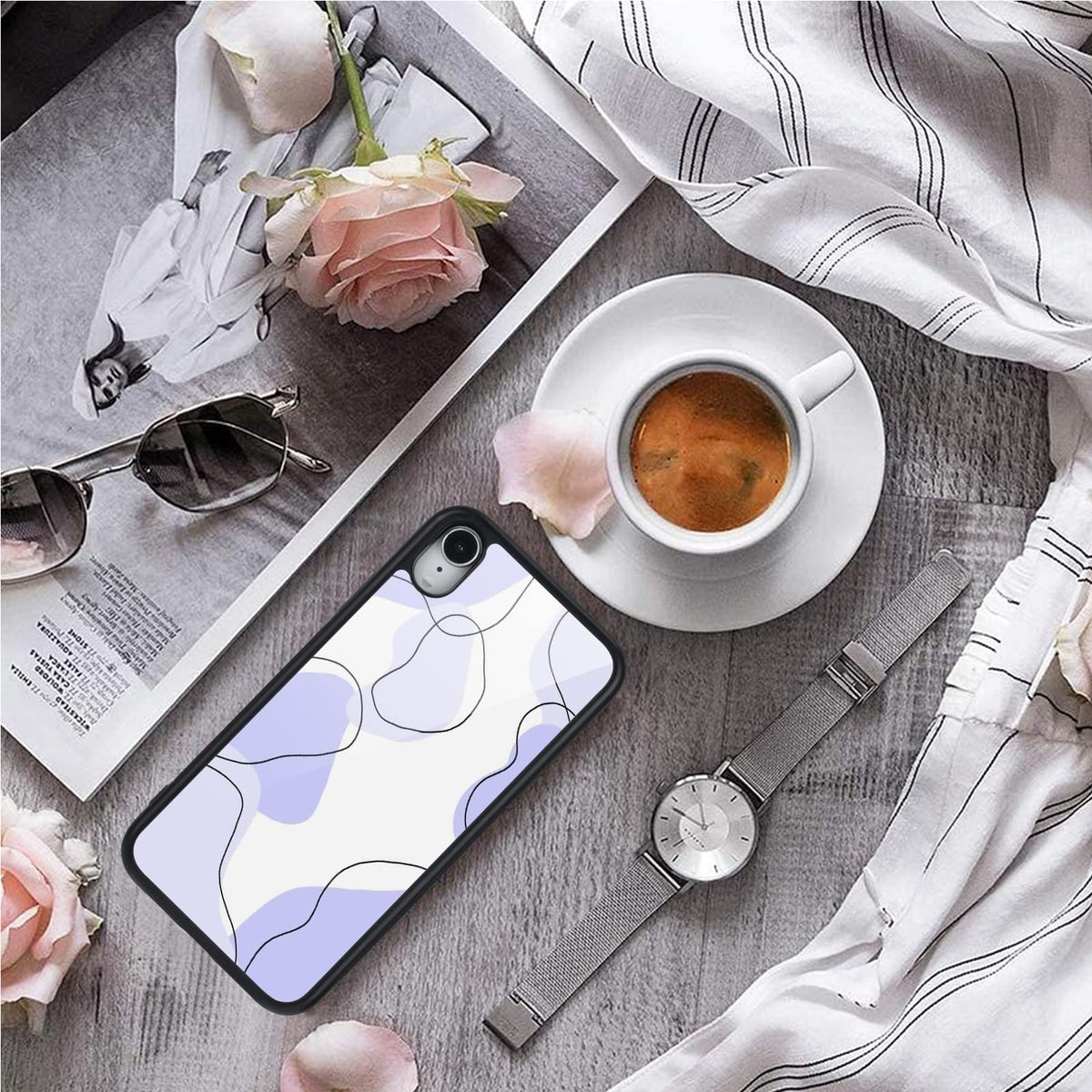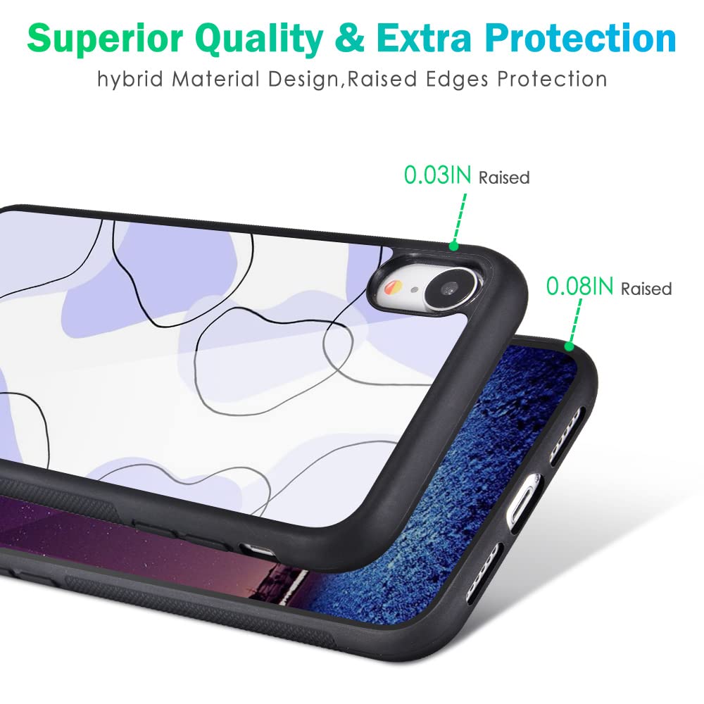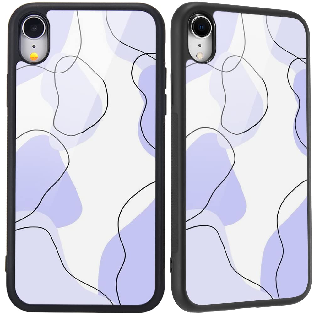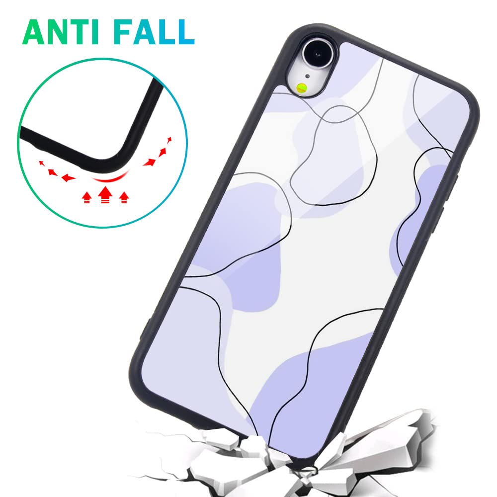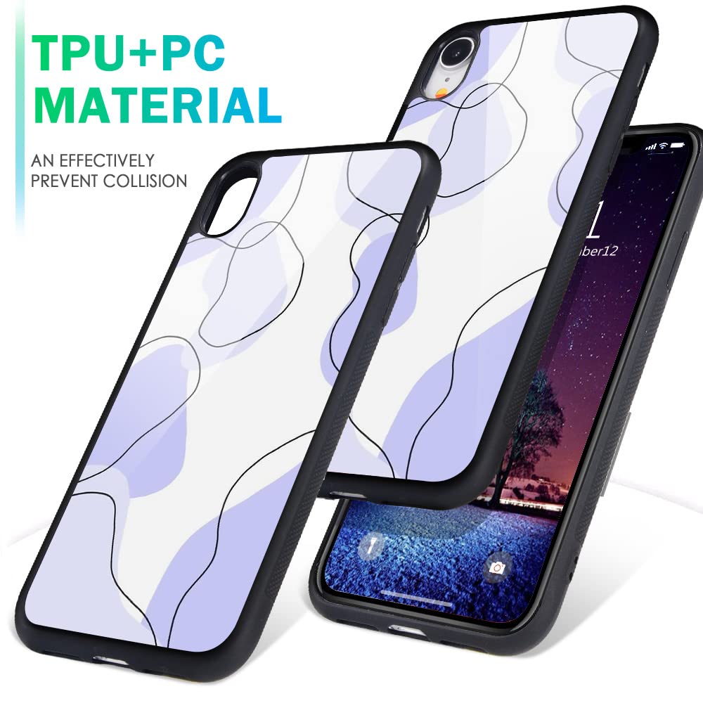 Maycari For Iphone Xr Case Abstract Line Art Purple Design, Hard Back Cover With Cute Aesthetic Protective Case For Women Girls