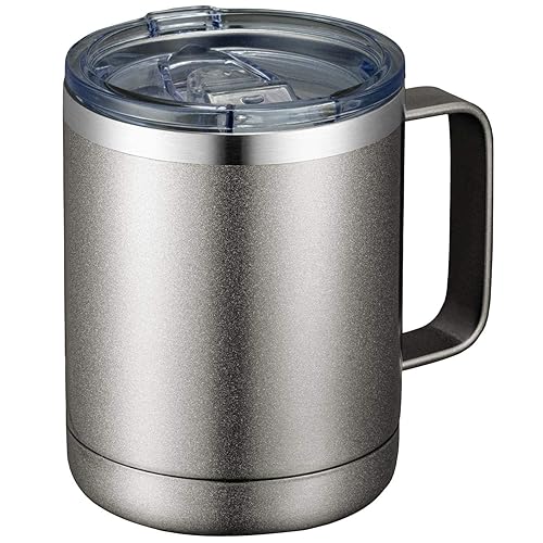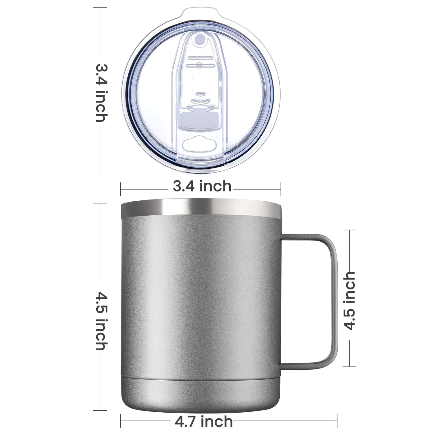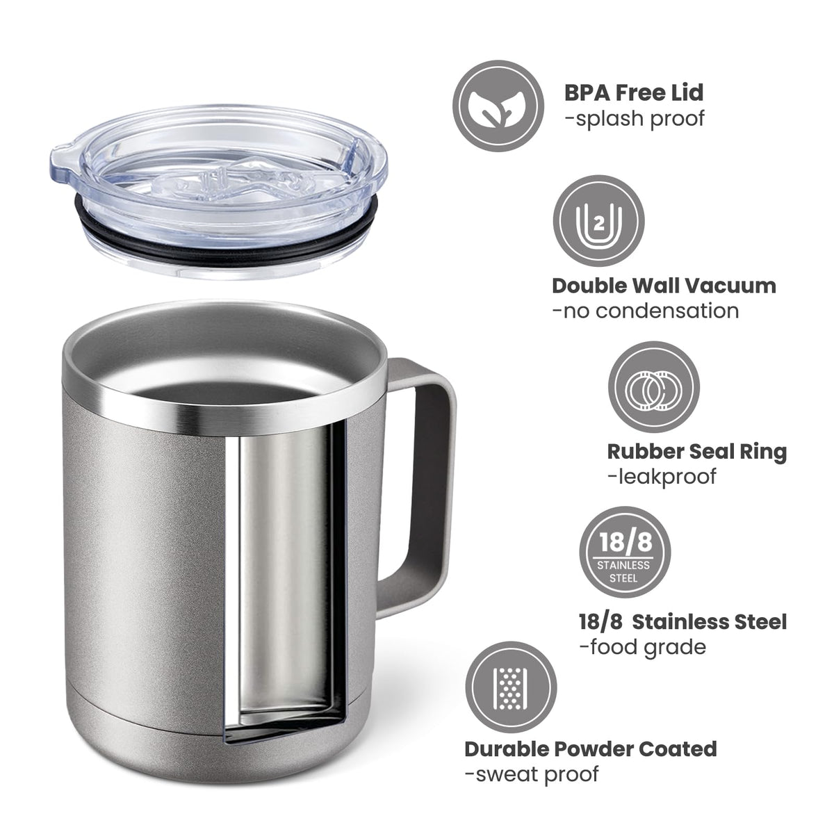 Meway 12Oz Coffee Mug With Handle And Sliding Lid,Stainless Steel Travel Tumbler Cup With Handle,Double Wall Vacuum Insulated Ca