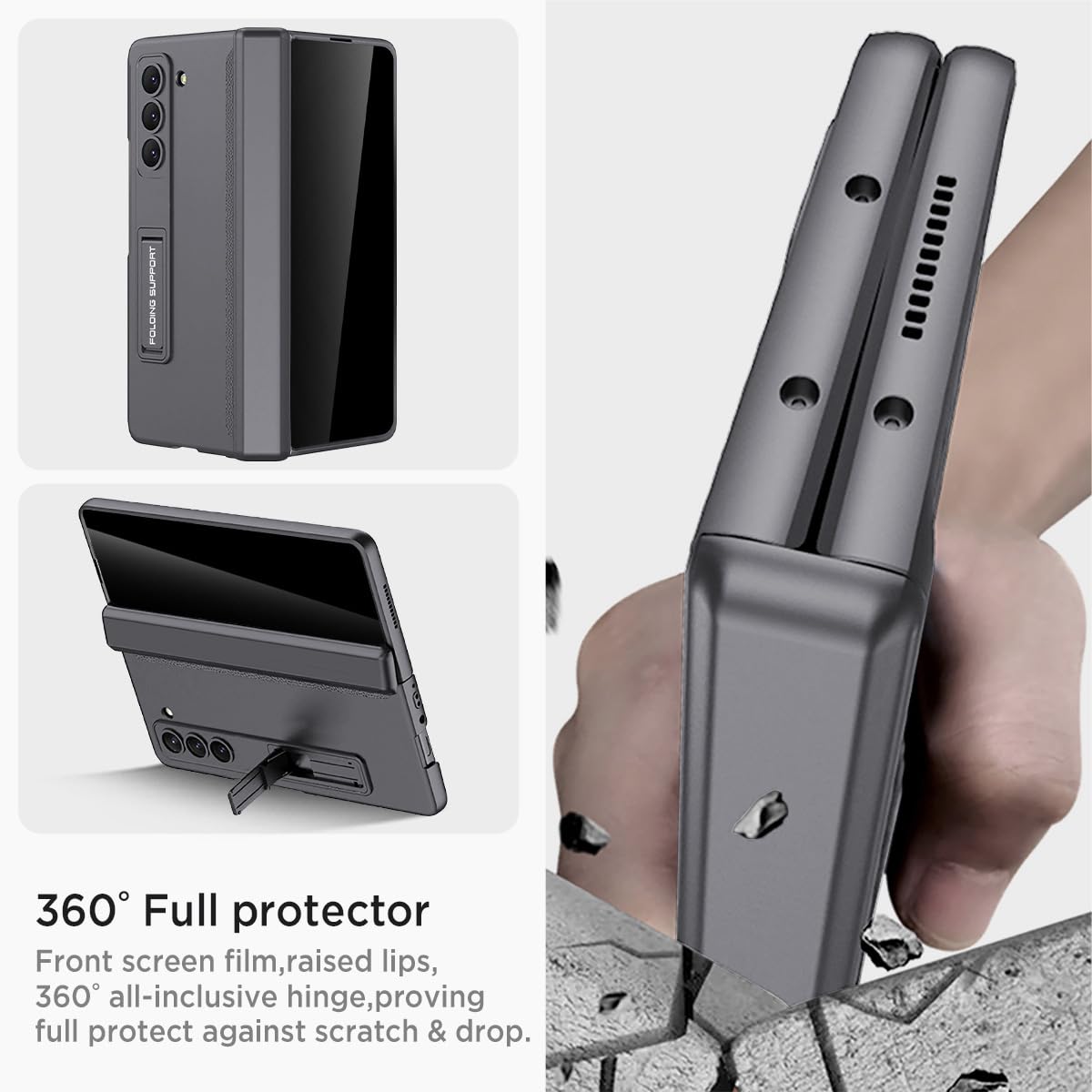 Miimall For Samsung Galaxy Z Fold 5 Case With Privacy Screen Protector, Built-In Adjustable Kickstand & Magnetic Hinge Protection All-Inclusive Protective Case For Galaxy Z Fold 5 5G(Grey)
