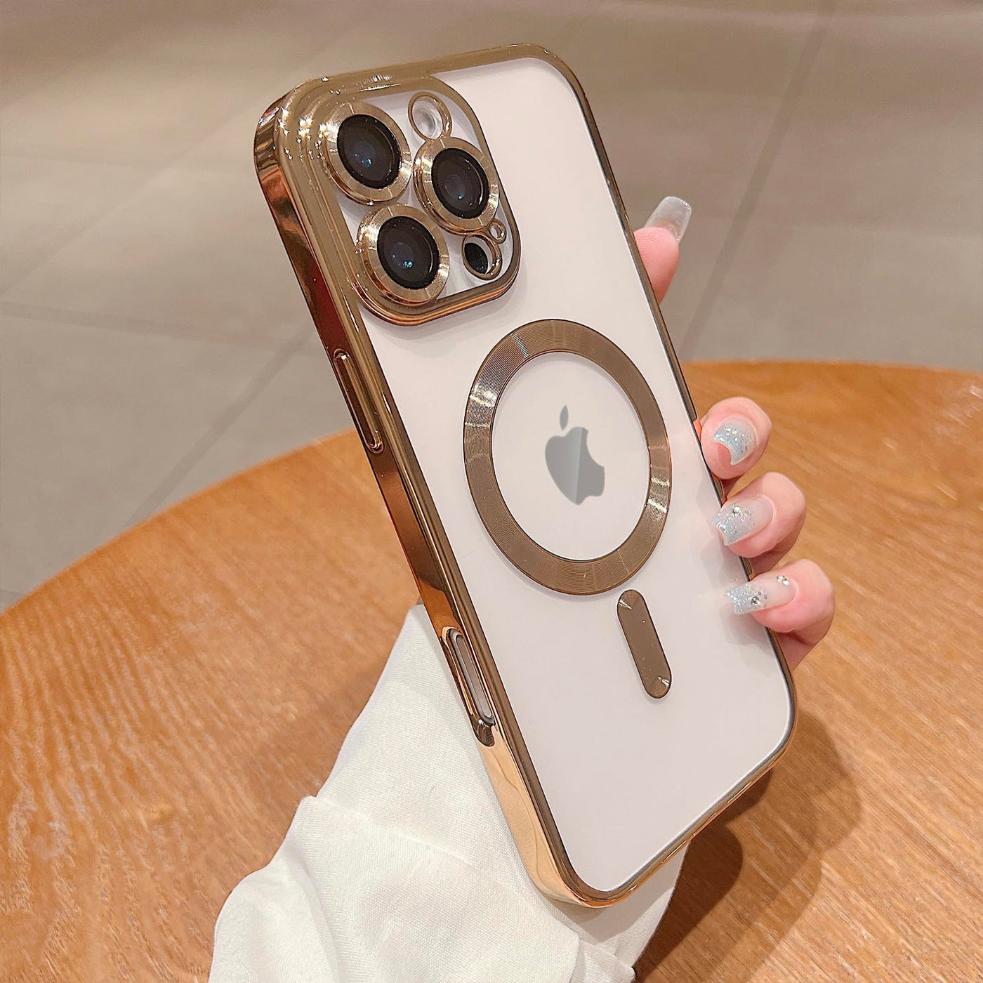 Misscase For Iphone 16 Pro Magsafe Case With Camera Lens Protector,Full Protection Clear Magnetic Case Compatible With Magsafe Elegant Anti-Scratch Case Cover For Iphone 16 Pro Gold