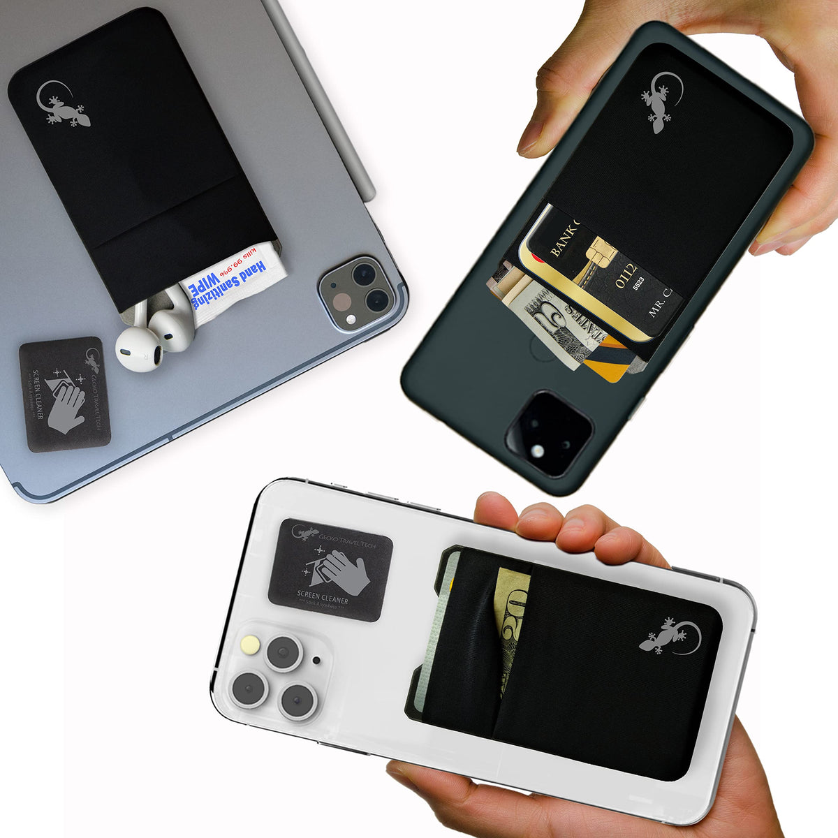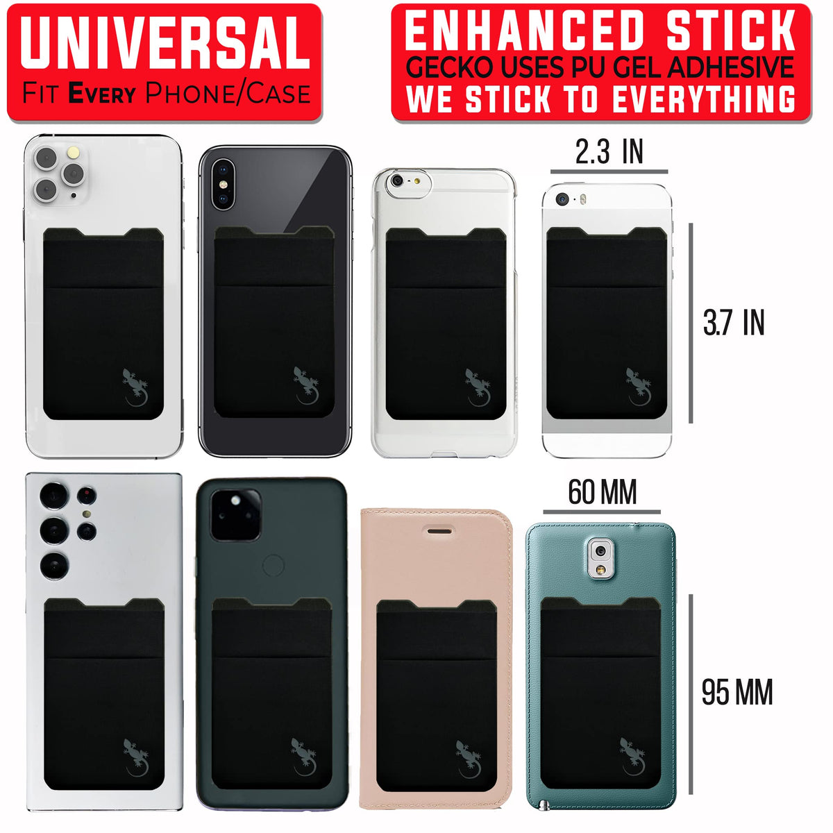 Gecko Cell Phone Wallets Are A Convenient Way To Carry What You Need We Designed This Mobile Phone Wallet Specifically With The Minimalist In Mind Gecko Travel Techs Phone Wallet Is The Only Smartphone Wallet On The Market That Boasts Some Of The Best Stick On Card Holder Features Here Are Some Of The Features That Makes The Gecko Card Holder The Best Hand Phone Holder On The Market Privacy, When You Purchase An Adhesive Phone Wallet, One Of The Most Important Things Is Total Privacy You Want To Make Sure That The Mobile Phone Wallet Completely Covers All Your Cards We Designed This Credit Card And Cash Holder Specifically To A Size That Does Just That The Gecko Phone Card Wallet Is Made Extra Tall So All Of Your Cards And Cash Are Covered And Donat Show To The World Around Us Safety, Gecko Cell Phones Wallets All Come With 1 Rfid Blocking Card Sleeve This Card Is A Credit Card Holder That Goes Into The Cell Phone Wallet To Prevents Identity Theft In The Modern World Today, Identity Theft Is Real, So Why Not Be Fully Protected Universal Fit, In Todayas World, There Are So Many Types And Brands Of Phones, X, S8, S9, A9, J7, Android, Galaxy, Moto, Pixel, Iphone, The List Goes On And On Gecko Is Designed To Fit On Almost Any Phone Got A Fingerprint Scanner Got 4 Cameras And A Flash No Problem Try Out A Gecko Card Pocket For Your Phone And If It Doesnt Fit We Will Give You A Full Refund Gecko Wallets Work With Nearly Any Phone Case As Well, Sticking To Them With No Issues We Stand Behind The Universal Fit Completely Quick Access To The Cards You Need, When You Need Them Scan Transit Cards, Open Doors, Pay For Products By Reaching To Your Phone What Could Be Faster Gecko Card Holders Feature One Stretchable Pocket To Fit 2-3 Card And A Bit Of Cash We Pretty Much Check To Make Sure We Have Our Phones With Us All The Time, So Always Know That In Case Of Any Emergency Or Situation You Find Yourself In, Your Gecko Phone Wallet Has A Bit Of Cash