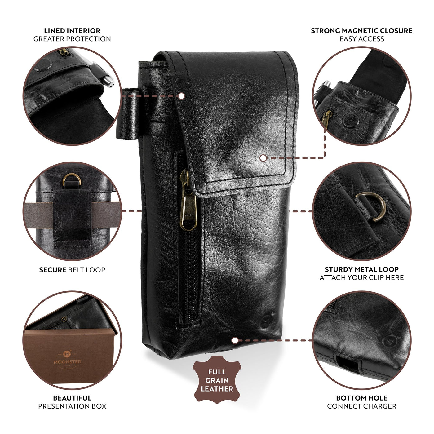 Moonster Leather Phone Holster Genuine Full Grain Buffalo Leather Cell Phone Holsters 7 H X 3.5'' W Leather Cell Phone Ho