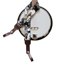 Usic First Original Design, 2 Inch Width (5Cm), Padded, Vintage Ukiyoe Stylechrysanthemum & Crane In Black Soft Muslin & Genuine Leather Delux Banjo Strap, With 2 Pieces Of Music First Leather Strap Locker Vintage Ukiyoe Style Super Cool Gold Stamping Chrysanthemum & Crane In Black Patterned Shell Fabric Genuine Leather Strap Ends (Since The Fabric Of The Strap Is Cut From A Big Piece Of Fabric, The Pattern Of Each Strap Will Be A Little Different, That Means Your Strap Will Be Unique) Material: Cotton (Out Side) + Sponge Cushion Layer (Interlayer) + Cotton Meshbelt (Inner Side)+Abs Accessories (Important It Will Protect Your Banjo Not Been Scratched) Width: 2 Inch (5Cm) Length: 622Inch 336Inch (158Cm93Cm) Adjustable Thickness: 015Inch (038Cm) Two Pieces Of Genuine Leather Music First Strap Locker (Worth $799Piece) Included (Notice: The Banjo In The Photos Is Not Included, Thanks )