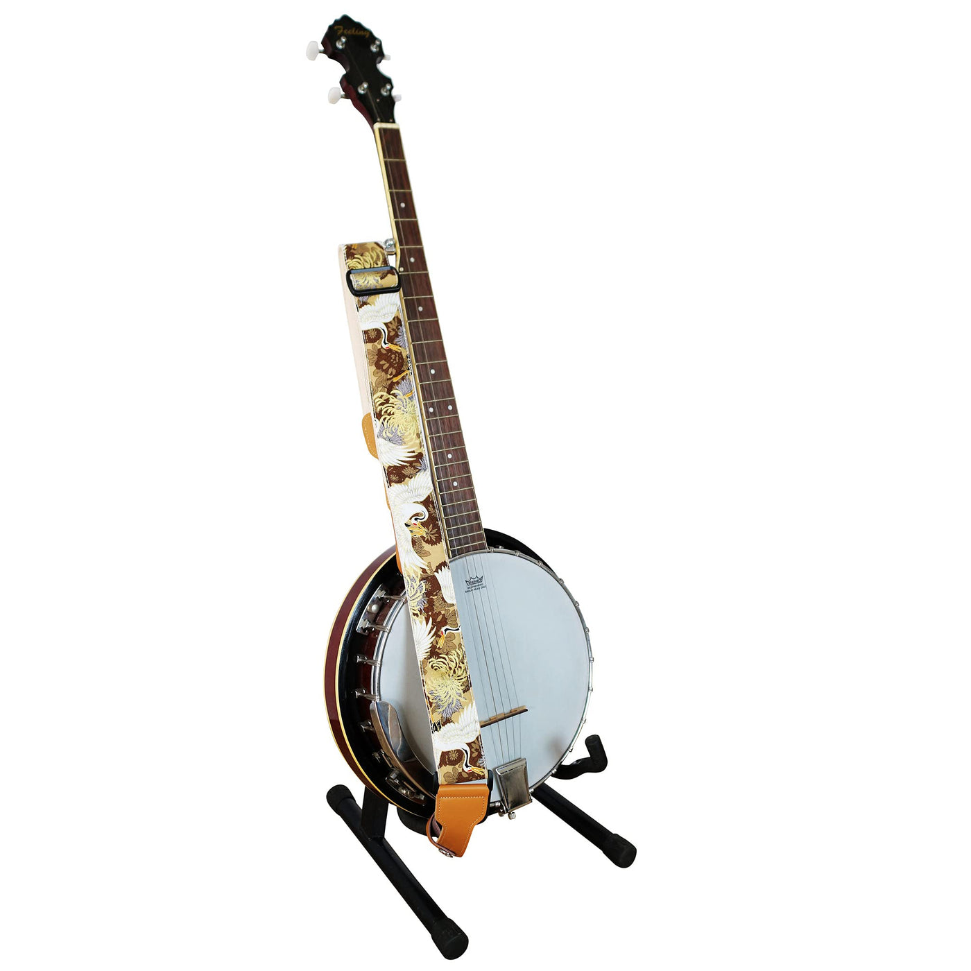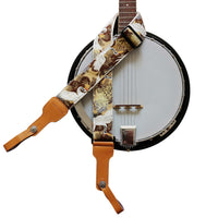 Music First, 2 Inch Width (5Cm), Padded, Vintage Ukiyoe Style''Chrysanthemum & Crane In Tan'' Soft Muslin & Genuine Leather Delu