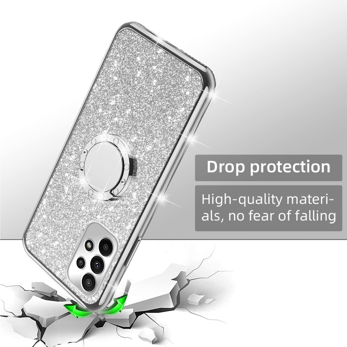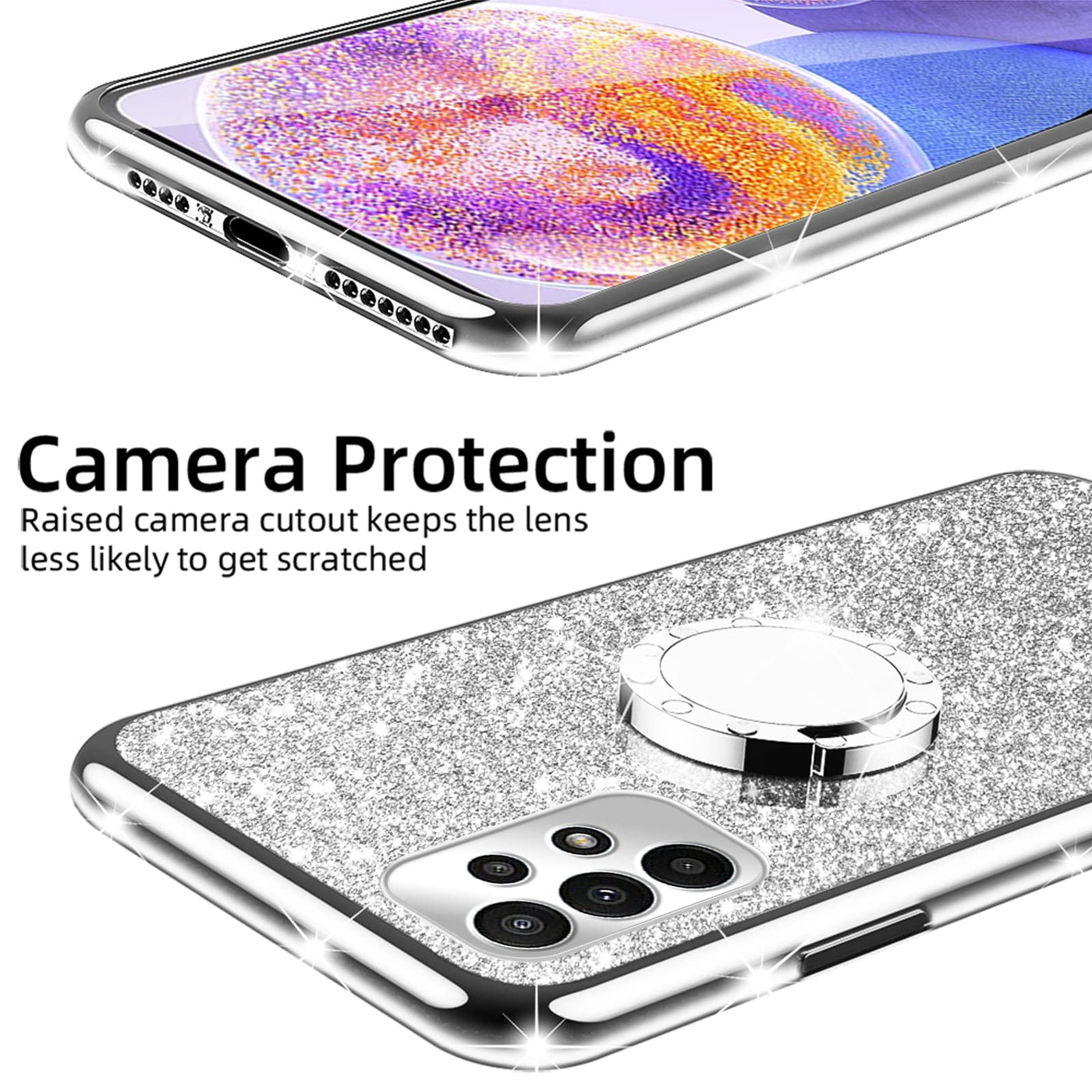 This Is An Ultra-Slim Tpu Soft Clear Case Especially For Samsung Galaxy A23 5G Notice: Not Fit Samsung Galaxy A32 5G Please Check Your Phone Model Before Purchase Product: 1 * Phone Case With Ring Stand 1 * Phone Strap Ultra Thin Shiny: Gorgeous Glitter Cute Galaxy A23 5G Phone Case Is Ultra Slim With Smooth Material For Comfortable Touch It Is A Special Gifts For Girls, Women And Your Family Diamond Ring Kickstand: This Video Kickstand Has Enviable Hands-Free And Enhances Your Viewing Experience Please Note: There Is A Piece Of Hidden Iron Inside The Center Of The Holder Ring, Which Allows To Put It On A Magnet Car Mount During Soft Slim-Fit Tpu: Clear Crystal Back Of This Is Girls Women Glitter Case Allows Your Phone To Shine Through And Reveals Its Original Color And Design, Soft Durable Tpu Material And Slim Fit Design Bring A Better Grip For Girls Women A23 5G Phone Air Cushion Technology: The Air-Cushion Corner Bumpers Could Absorb The Shock,Offer Protection For Drops Soft Tpu Materials Offer Maximum Protection From Shocks And Hard-Hits For The Back And Sides Of Your Phone