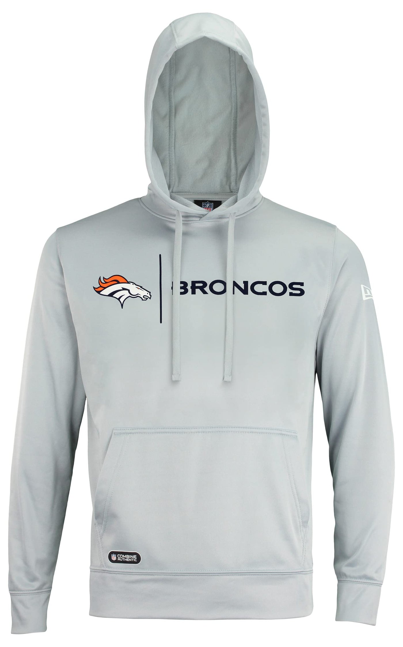 New Era Nfl Mens Cool Grey Gametime Pullover Performance Hoodie, Pro Football Sweatshirt, Denver Broncos, Small