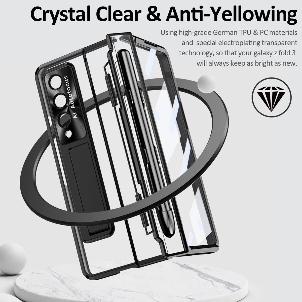 (New) Miimall For Samsung Galaxy Z Fold 3 Case With S Pen & Pen Holder, One Piece Design For Fold 3 Case With Screen Protector &