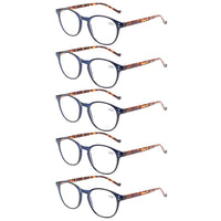 Norperwis 5 Pairs Reading Glasses Standard Fit Spring Hinge Readers Glasses For Men And Women (5 Pack Bluetortoise, 125)