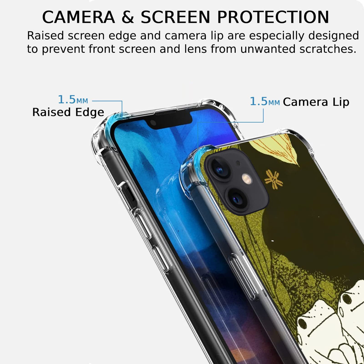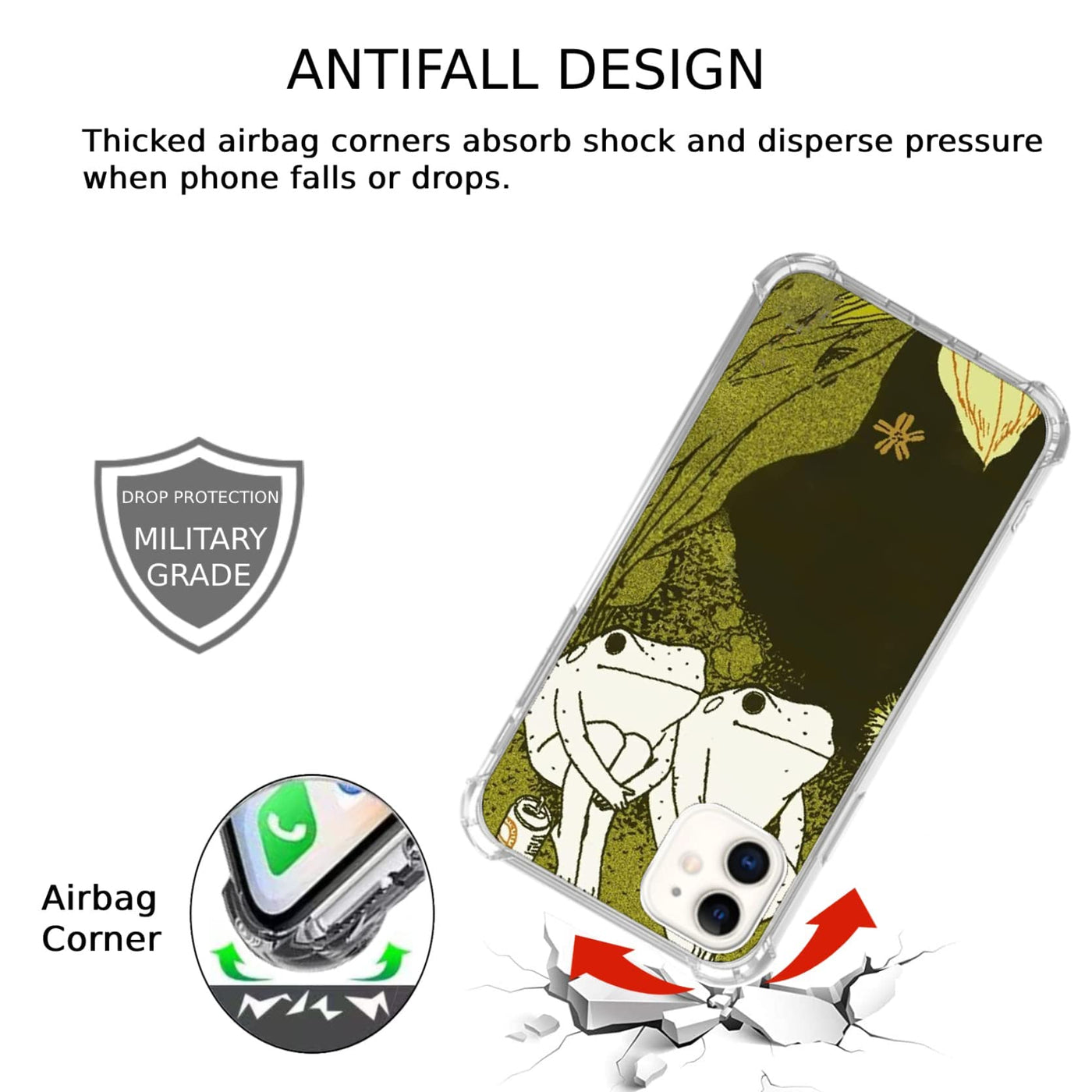 Q: How does the Nsyosio Reto Frogs Case protect my phone from drops?A: This case features military-grade protection with 4 corner airbags that absorb impact, offering protection from falls of up to 15 feet. It also has raised lips to protect the camera and screen.