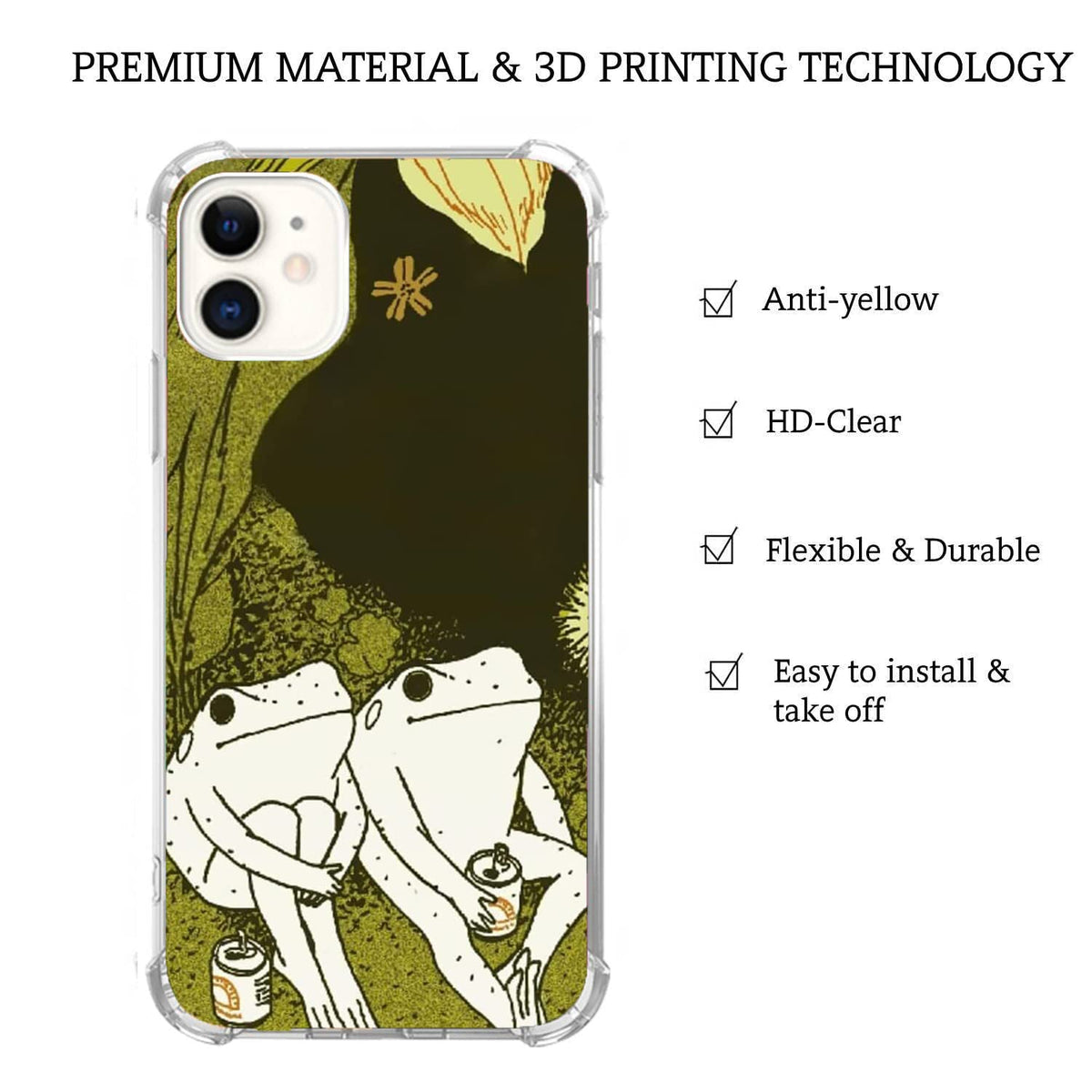 Nsyosio Reto Frogs Case For Iphone 12,Aesthetic Drinking Frogs Case For Men Women,Unique Cool Tpu Bumper Case Compatible With Ip
